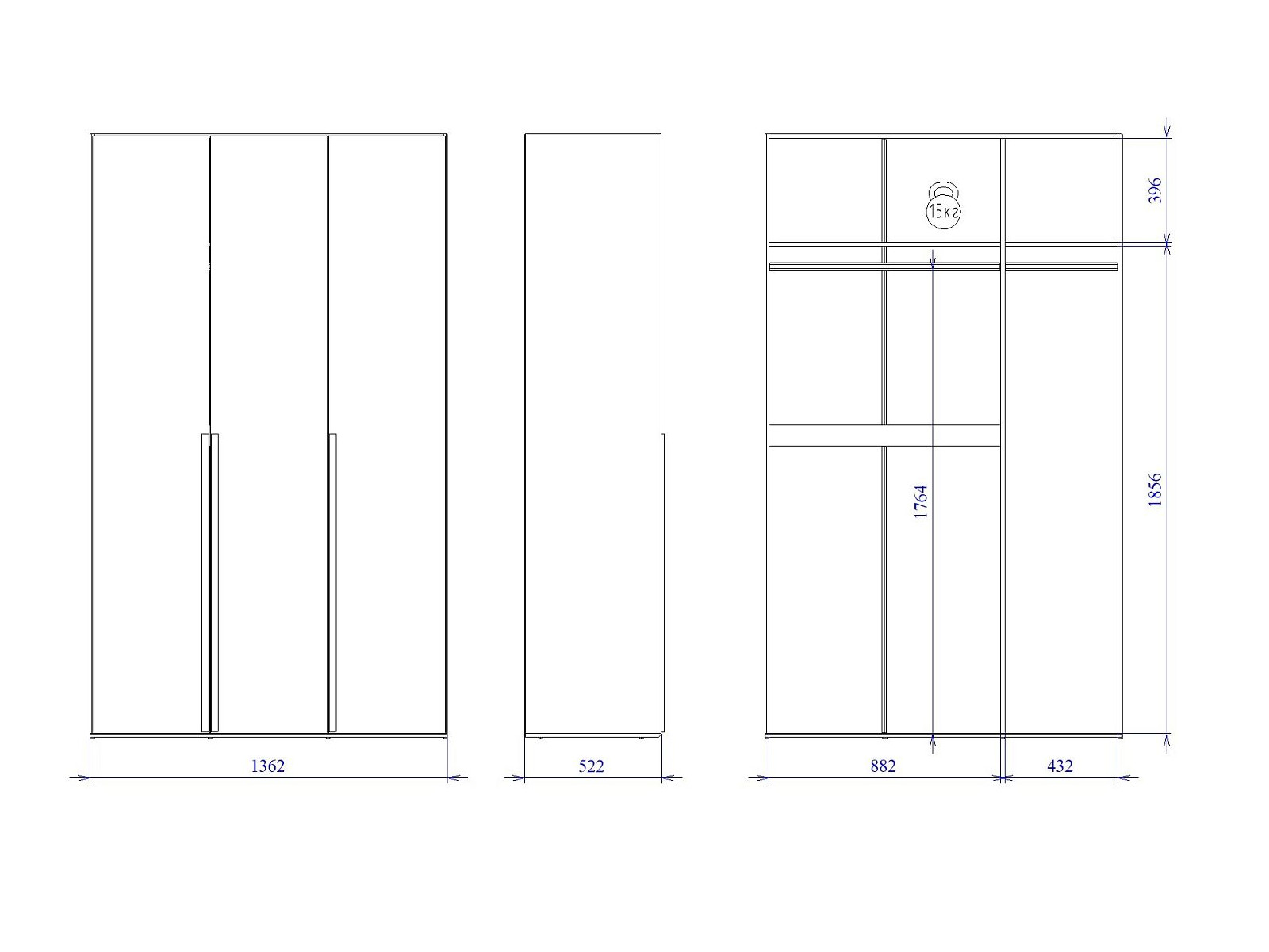 - Шкаф 3-дверный с двумя зеркалами Аврора