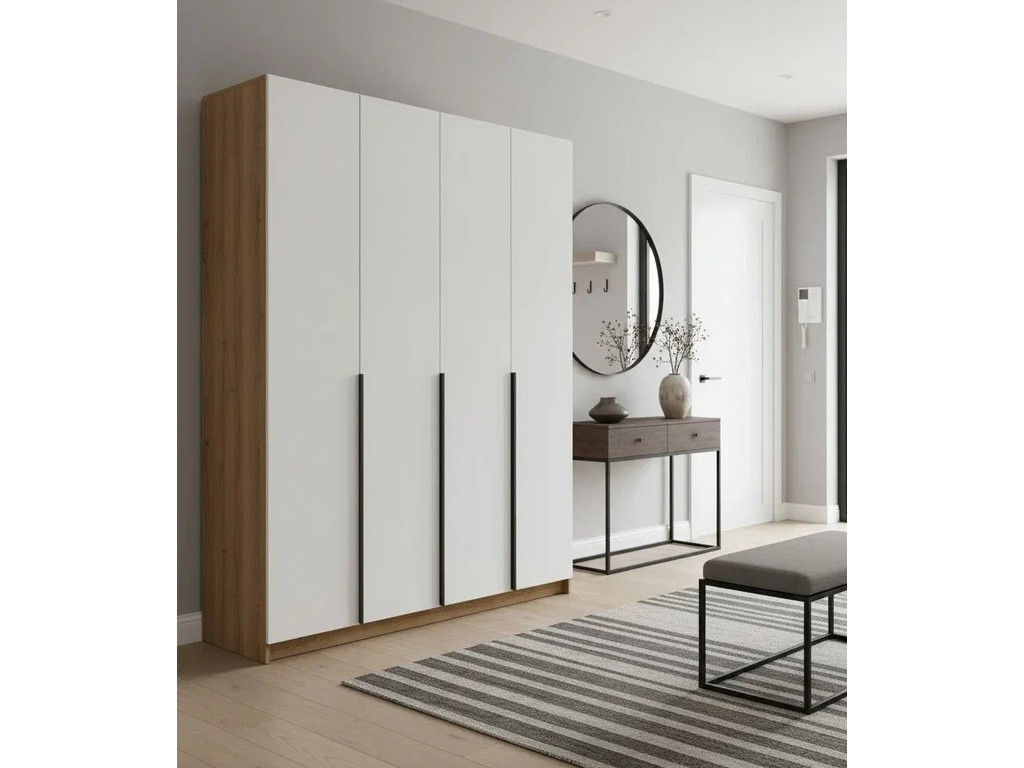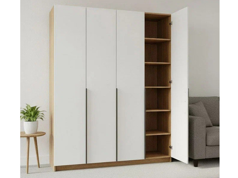 - Шкаф 4-хстворчатый с доводчиками Лион сонома/белый