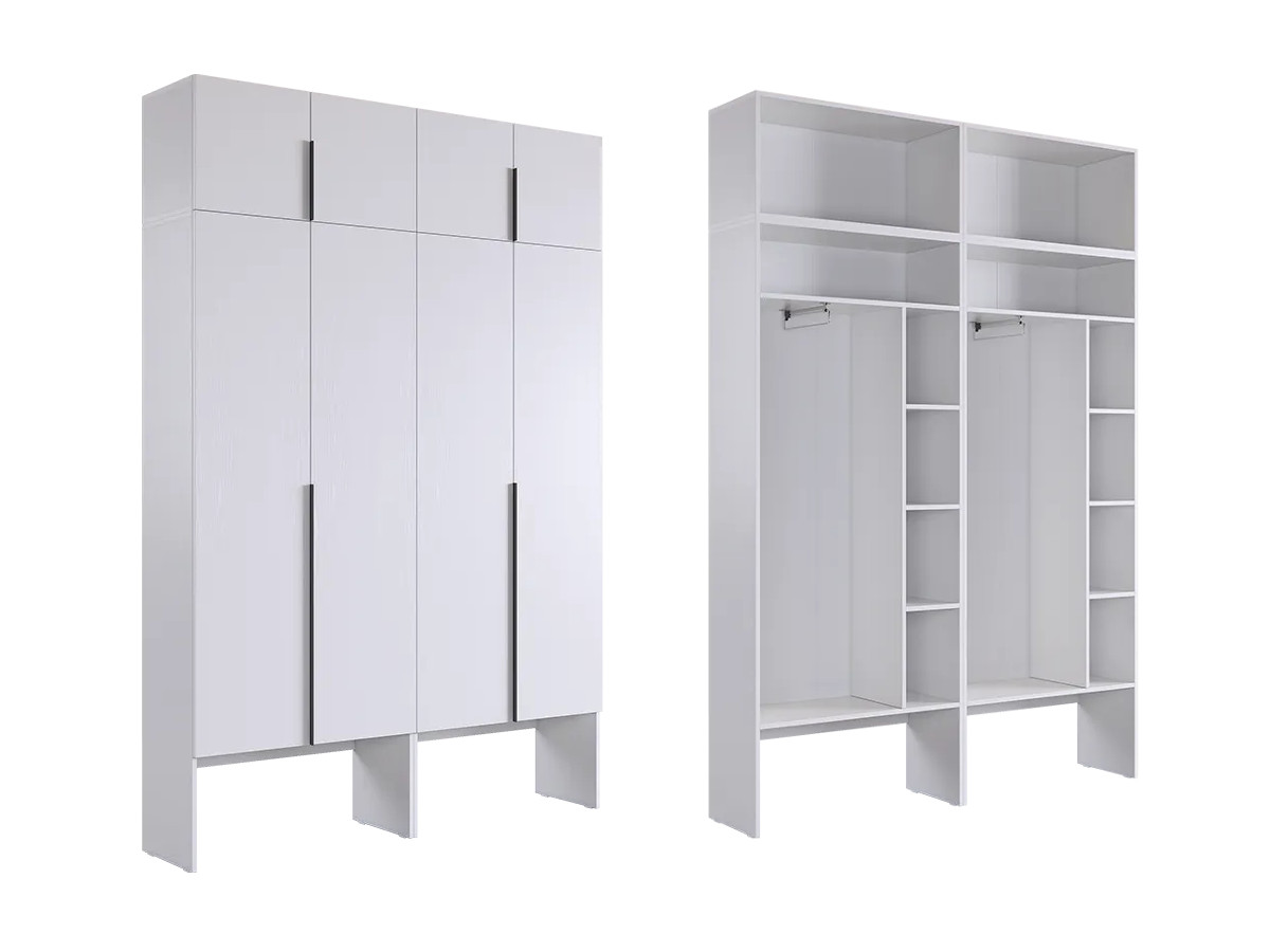 Шкаф четырехдверный с антресолью Баско К6 белое дерево
