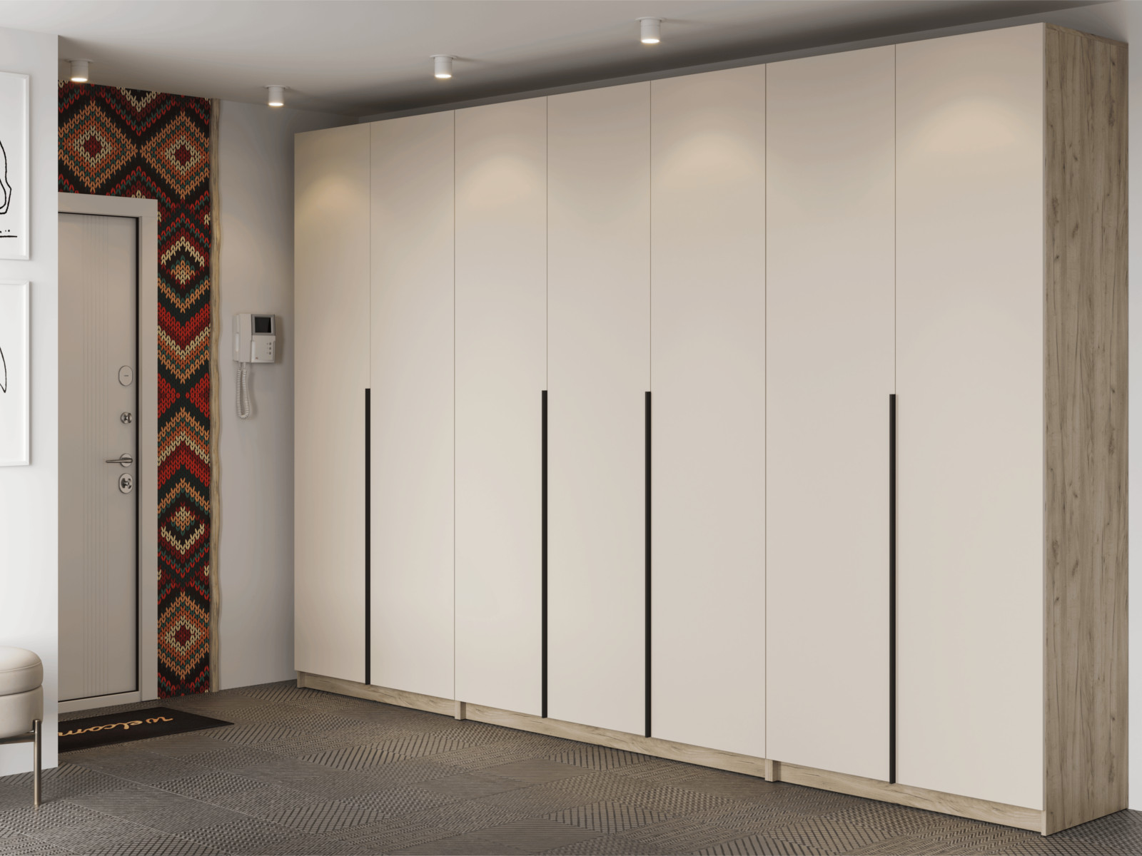 Центральное отделение – с металлической штангой для одежды