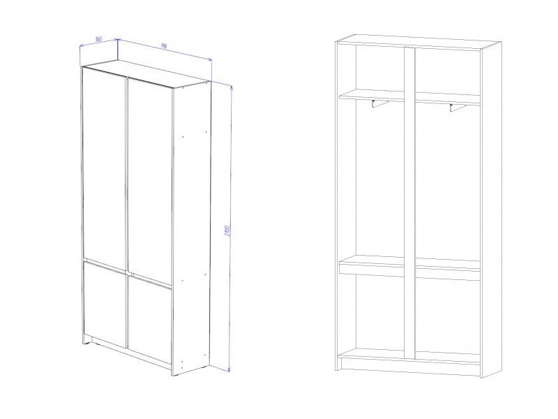Габариты: 996(Ш) х 360(Г) х 2100(В) мм