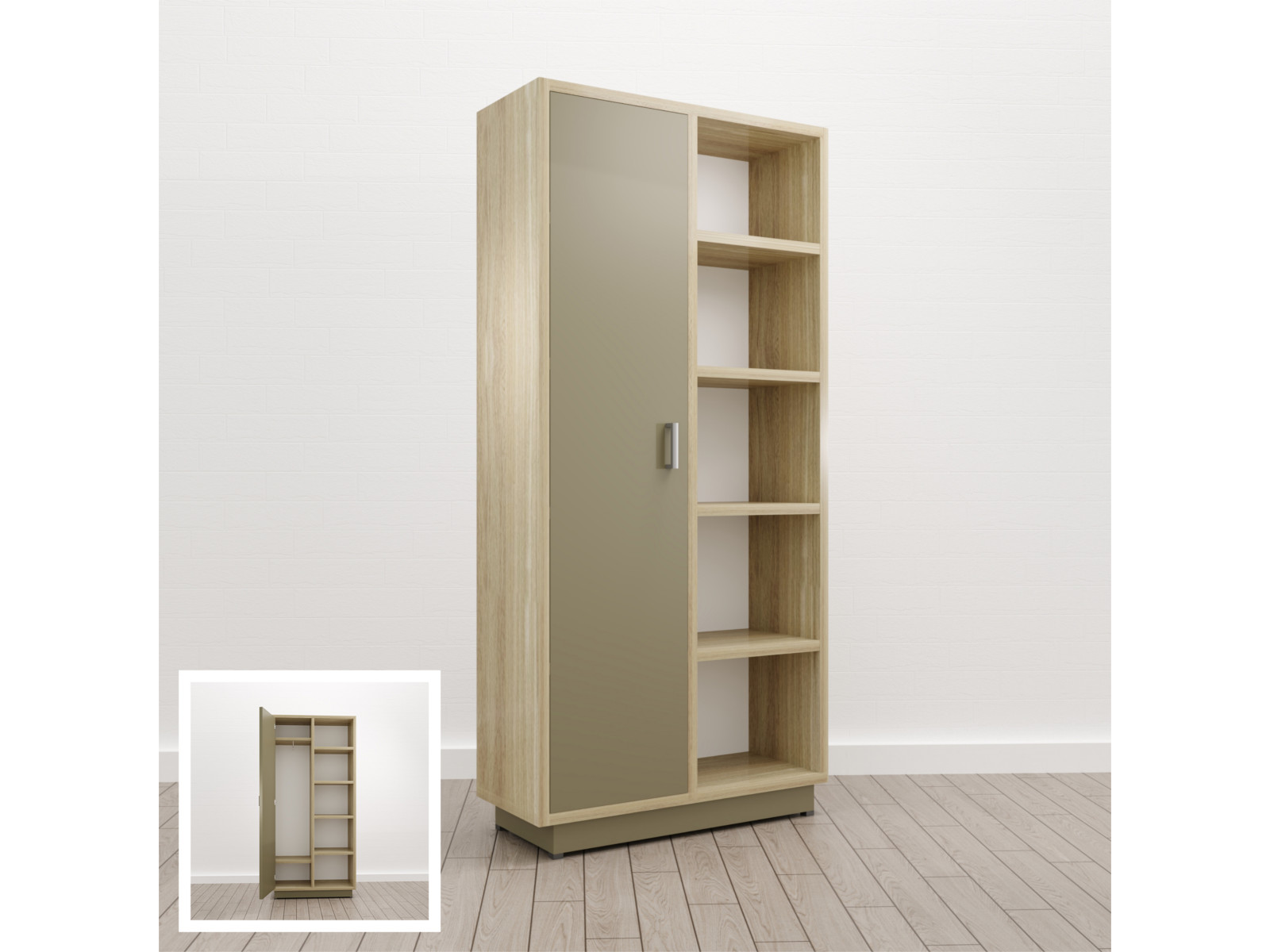 Шкаф комбинированный Левый (Е-13) Eclectic eco Дуб рокпайл-Мокко