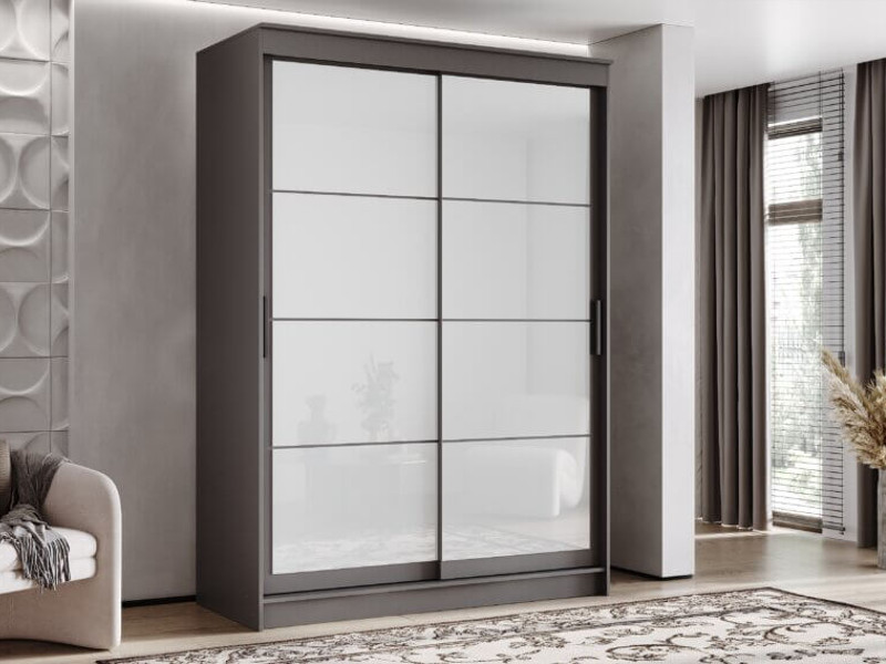 - Шкаф-купе Гранд-1 1600 Графит-двери Лакобель белый