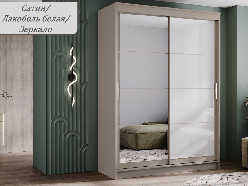 - Шкаф-купе Гранд-1 1600 Сатин-двери Зеркало-Лакобель белый