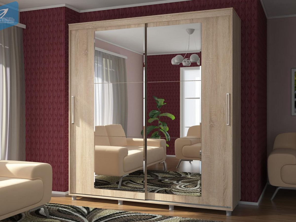 Шкаф-купе Комфорт 12 Прайм c прямоугольным зеркалом 1500