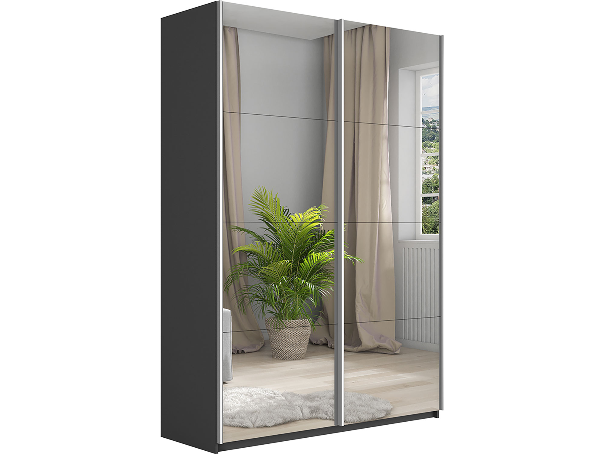 - Шкаф-купе Прайм 2-х дверный 1200 два зеркала Серый Диамант