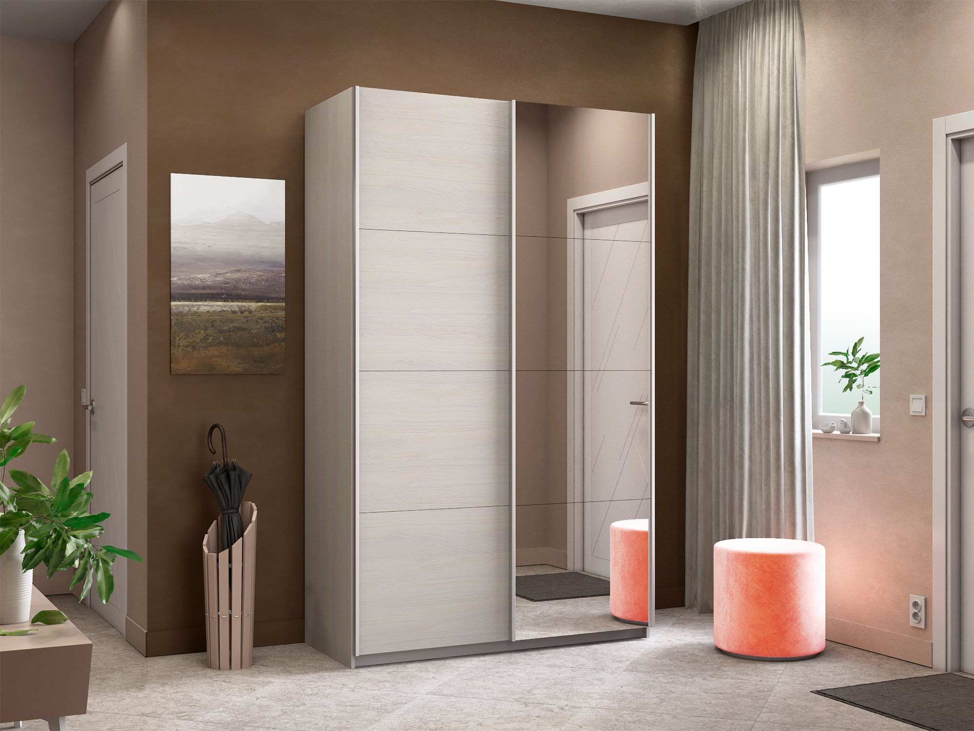 - Шкаф-купе Прайм 2-х дверный 1200 Зеркало/ДСП Ясень Анкор Светлый