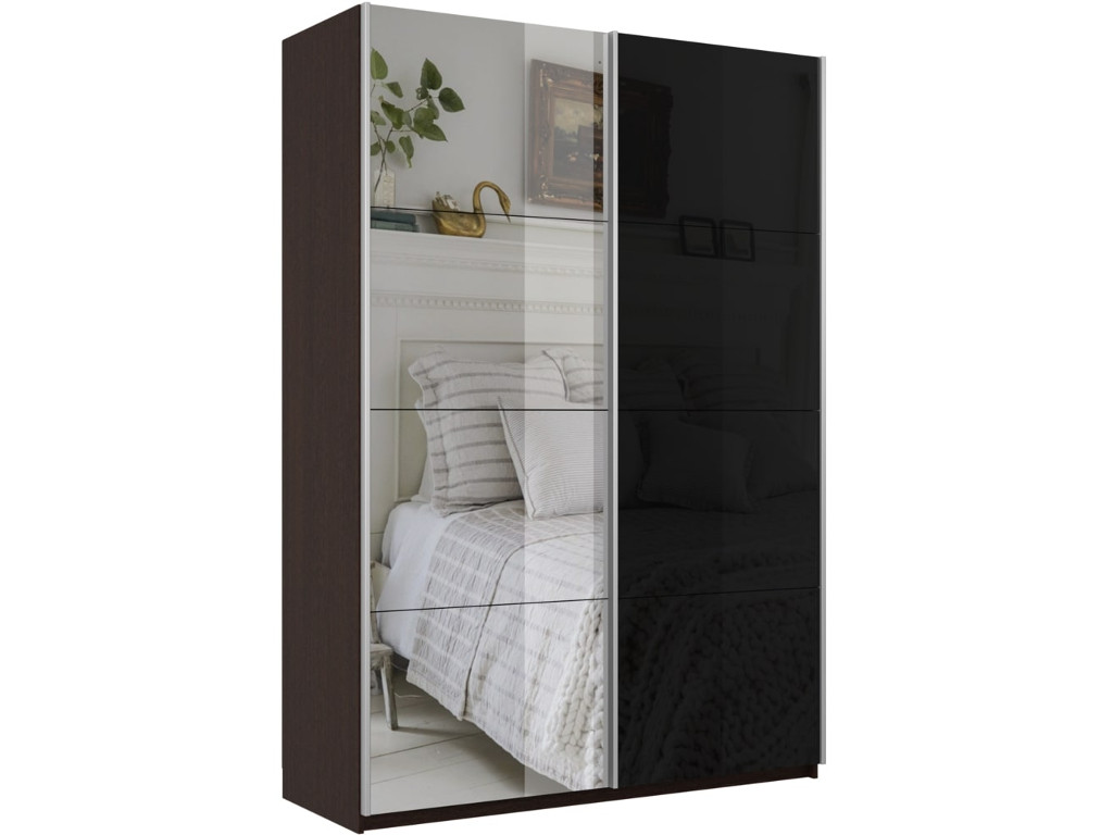 - Шкаф-купе Прайм 2-х дверный 1200 Зеркало/Стекло Черное Венге