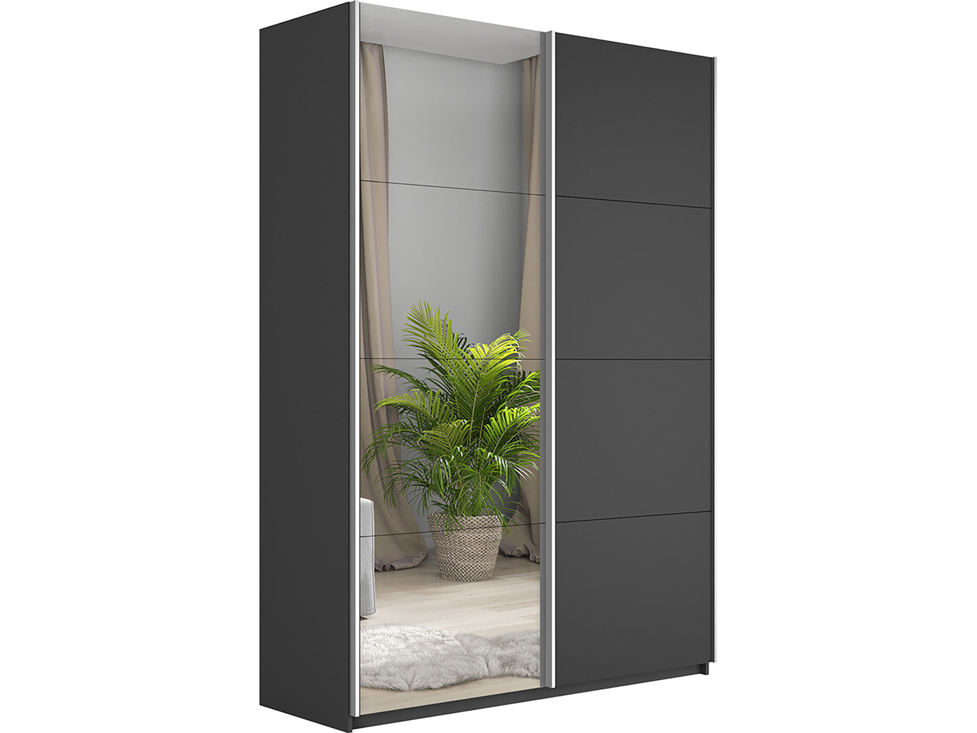 - Шкаф-купе Прайм 2-х дверный 1400 Зеркало/ДСП Серый Диамант