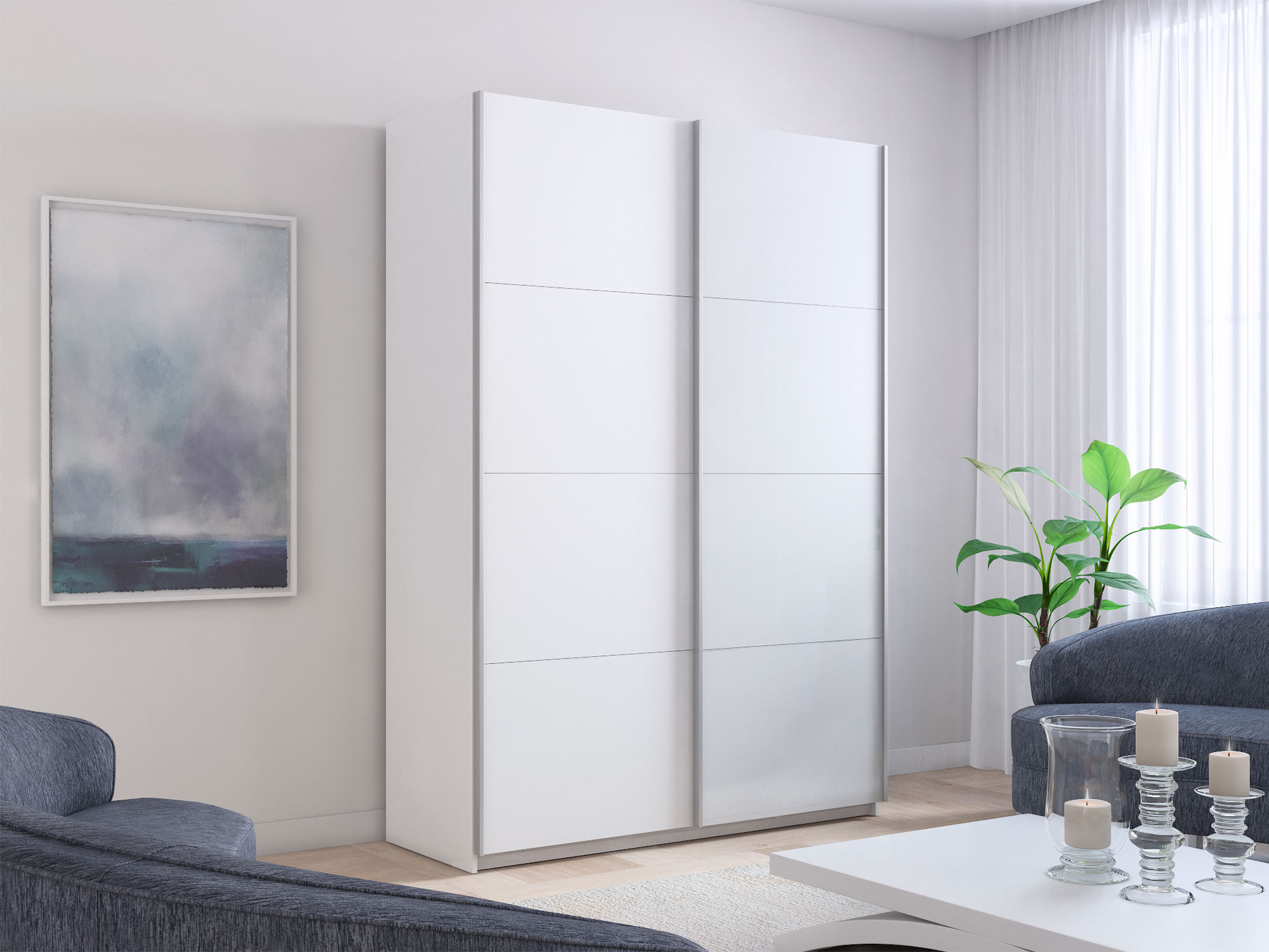 - Усиленная навесная система дверей помогает ходовому профилю выдерживать высокие нагрузки, а также сохраняет полезную площадь внутри шкафа, благодаря установке снаружи корпуса