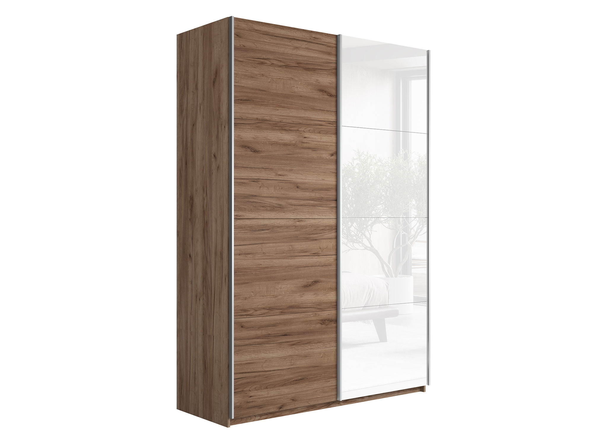 - Шкаф-купе Прайм 2-х дверный 1600 ДСП/Стекло Белое Крафт табачный