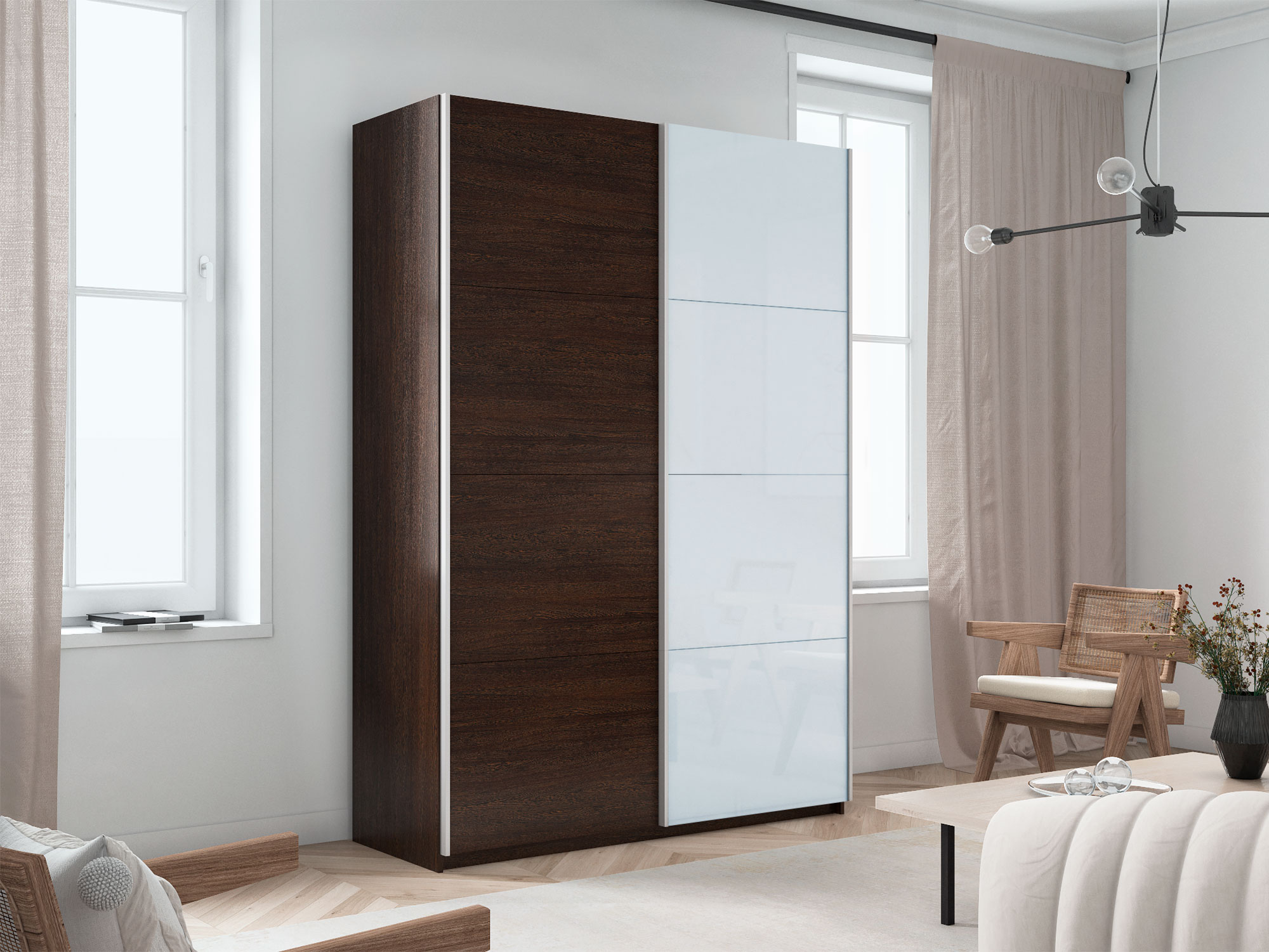 - Шкаф-купе Прайм 2-х дверный 1600 ДСП/Стекло Белое Венге