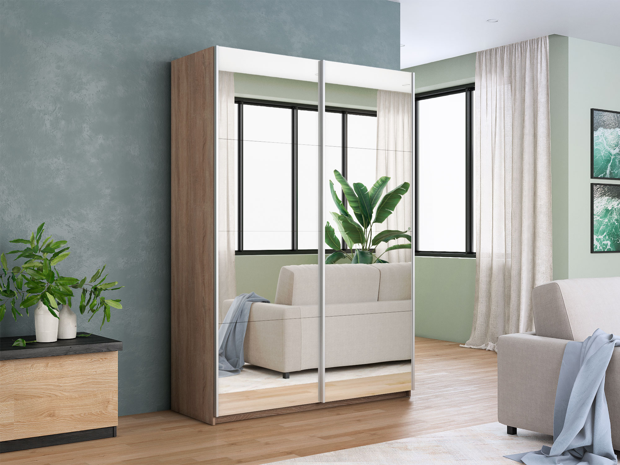 - Шкаф-купе Прайм 2-х дверный 1600 два зеркала Сонома