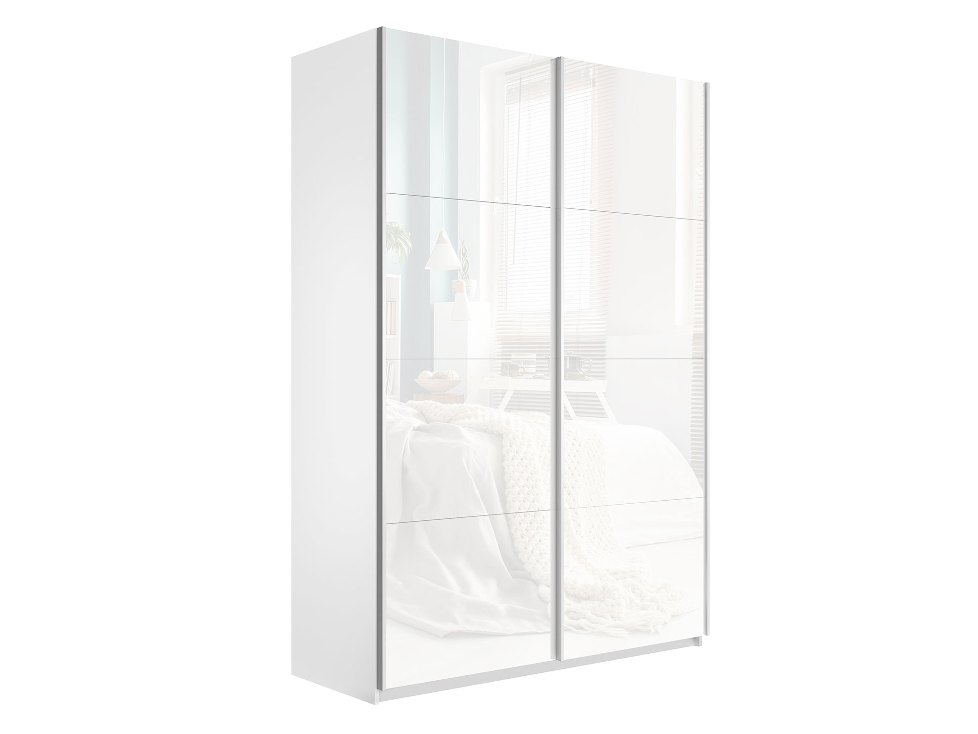 - Шкаф-купе Прайм 2-х дверный 1600 Стекло Белое Белый Снег