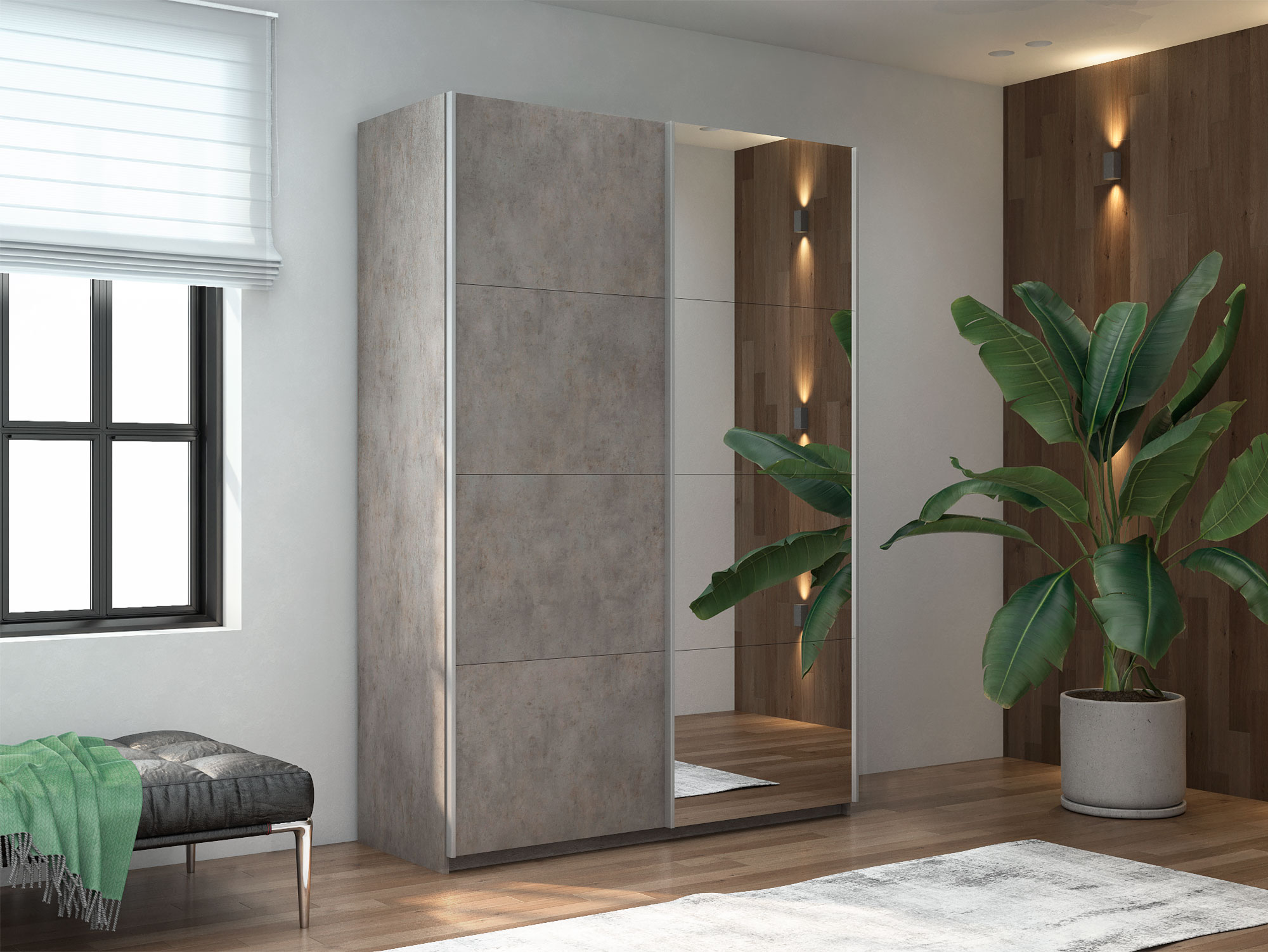 Шкаф-купе Прайм 2-х дверный 1600 Зеркало/ДСП Бетон