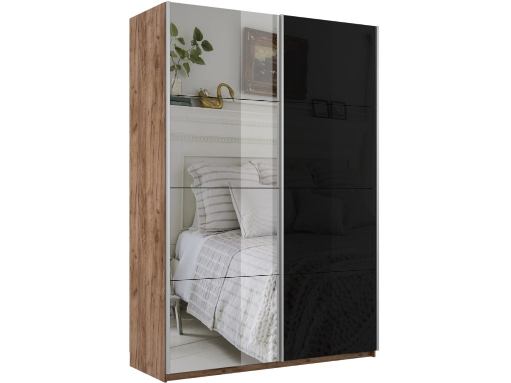 Шкаф-купе Прайм 2-х дверный 1600 Зеркало/Стекло Черное Крафт табачный