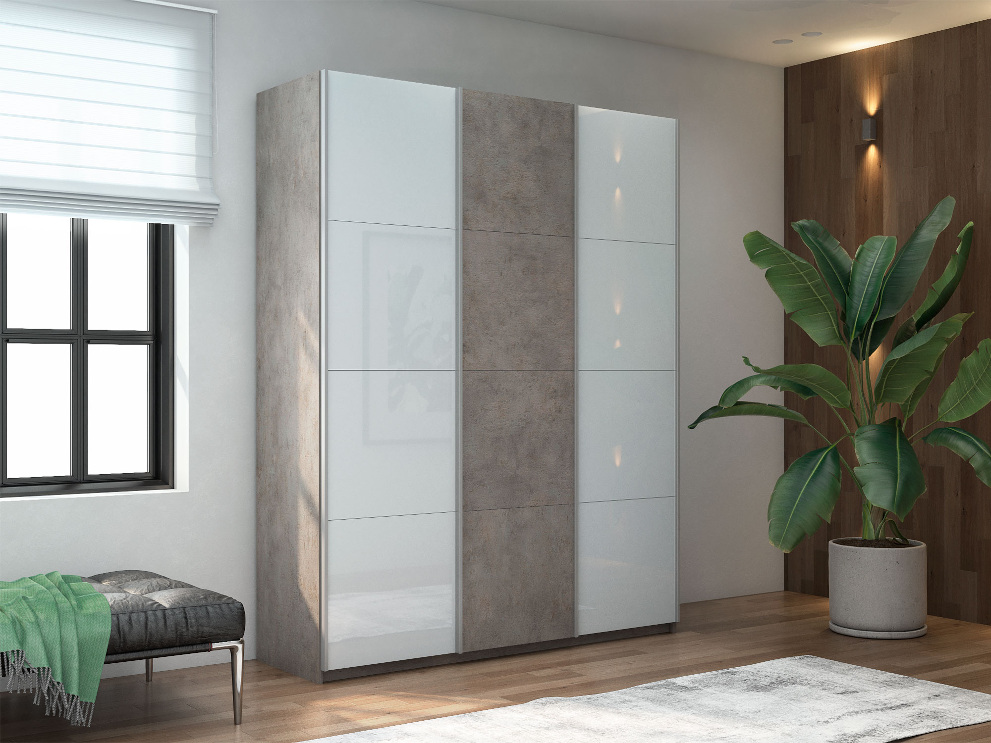 - Шкаф-купе Прайм 3-х дверный 1800 два Стекла Белые/ДСП Бетон