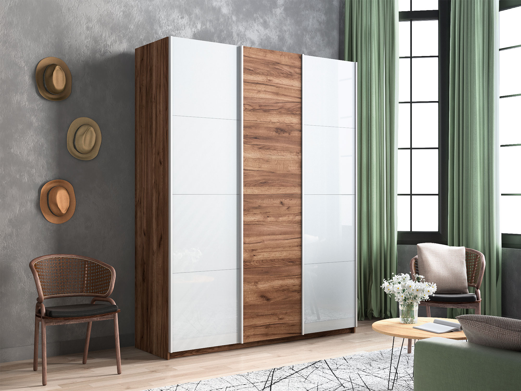 - Шкаф-купе Прайм 3-х дверный 1800 два Стекла Белые/ДСП Крафт табачный