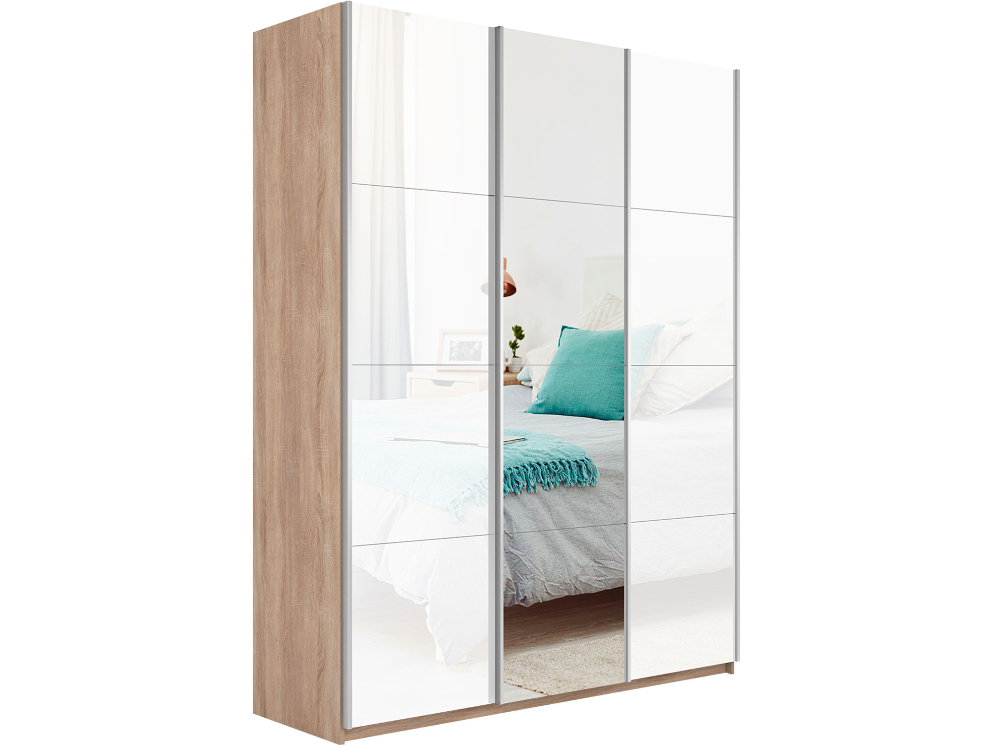 - Шкаф-купе Прайм 3-х дверный 1800 два Стекла Белые/Зеркало Сонома
