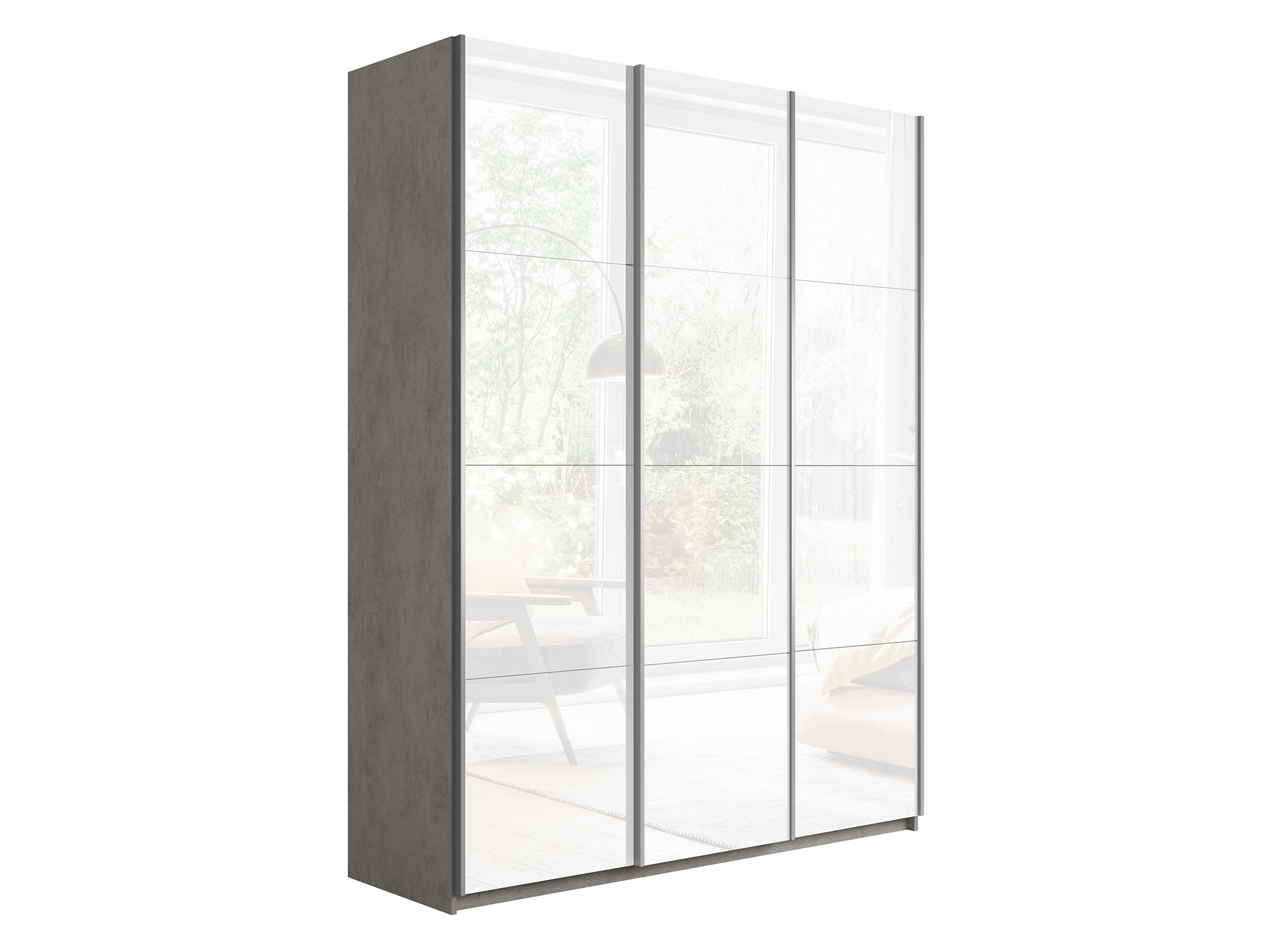 Шкаф-купе Прайм 3-х дверный 1800 три стекла белые Бетон