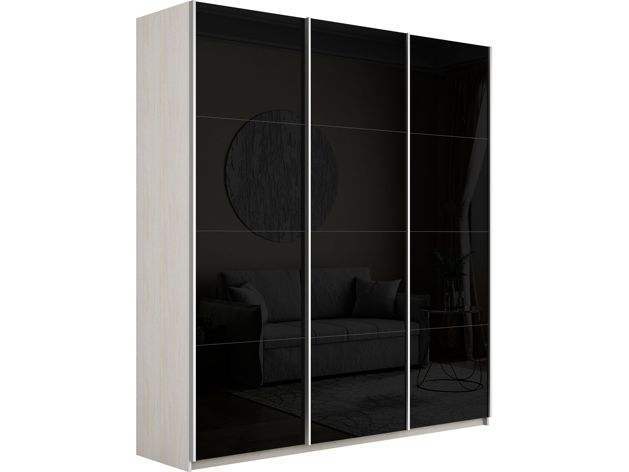 Шкаф-купе Прайм 3-х дверный 1800 три стекла черные Ясень Анкор Светлый