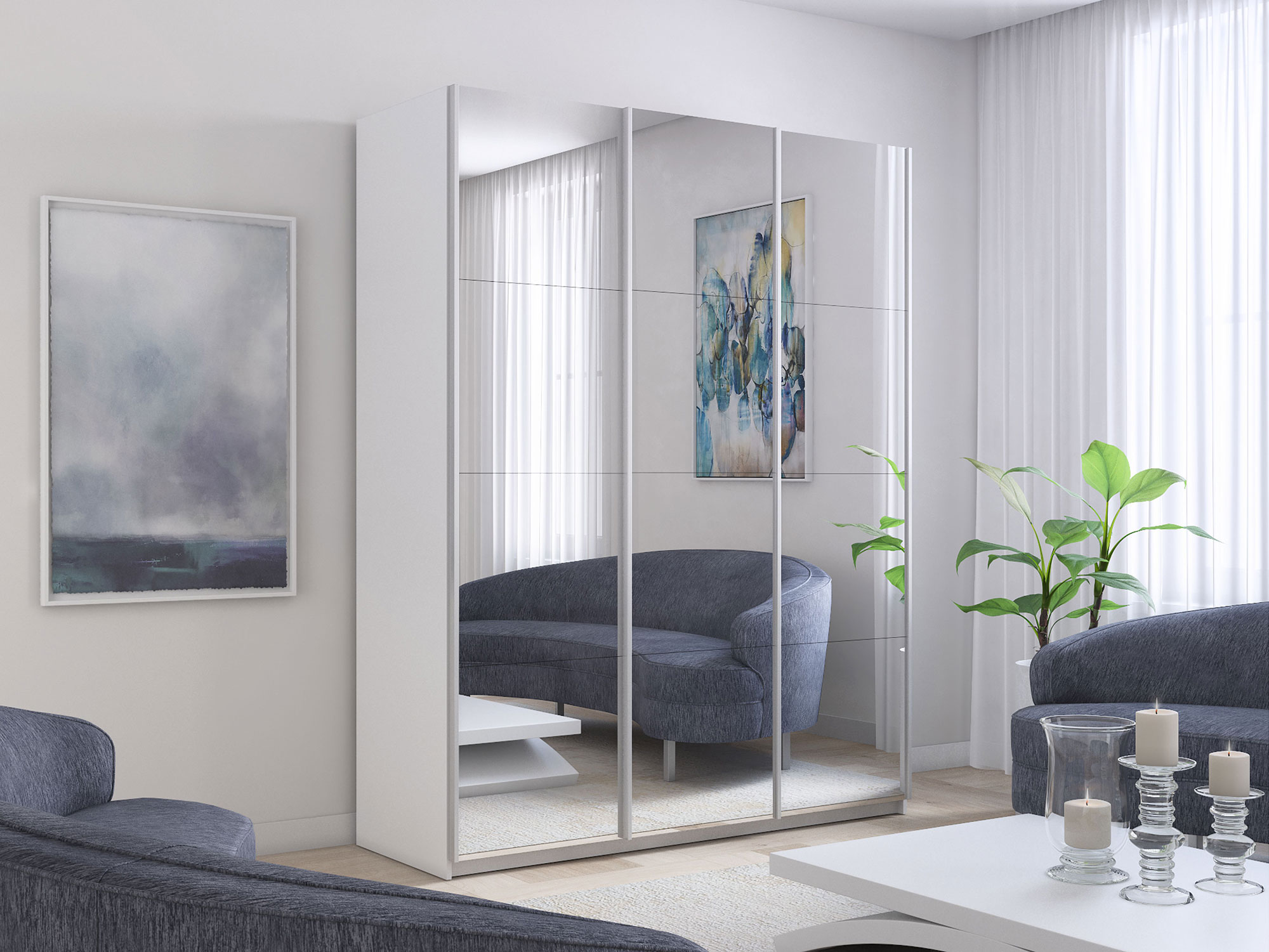 - Шкаф-купе Прайм 3-х дверный 1800 три зеркала Белый Снег
