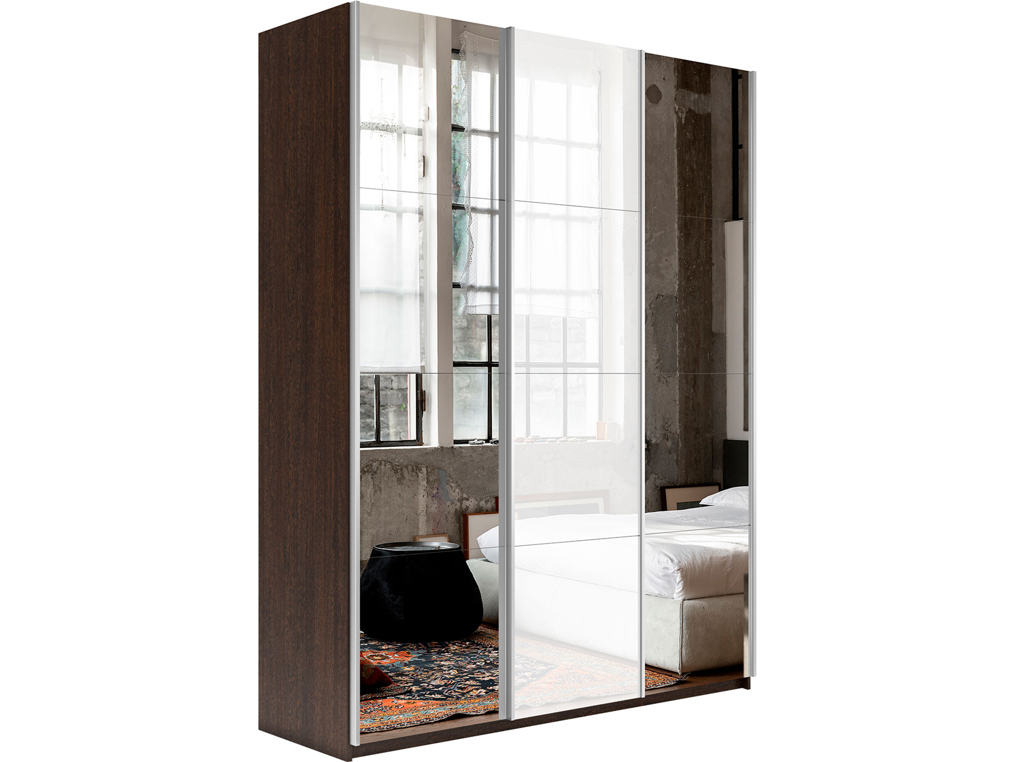 - Шкаф-купе Прайм 3-х дверный 1800 Зеркало/Стекло Белое/Зеркало Венге