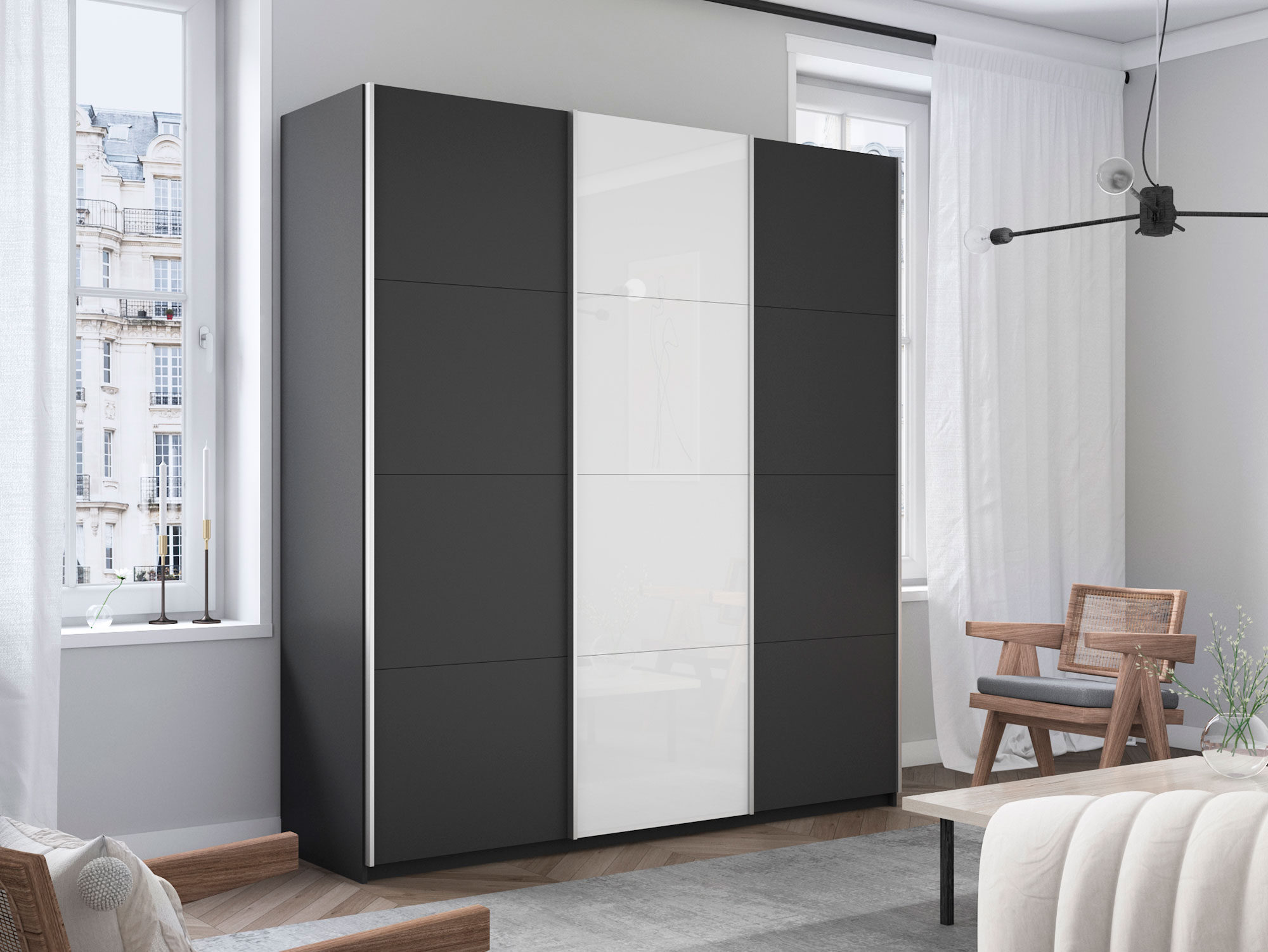 - Шкаф-купе Прайм 3-х дверный 2100 ДСП/Стекло Белое/ДСП Серый Диамант