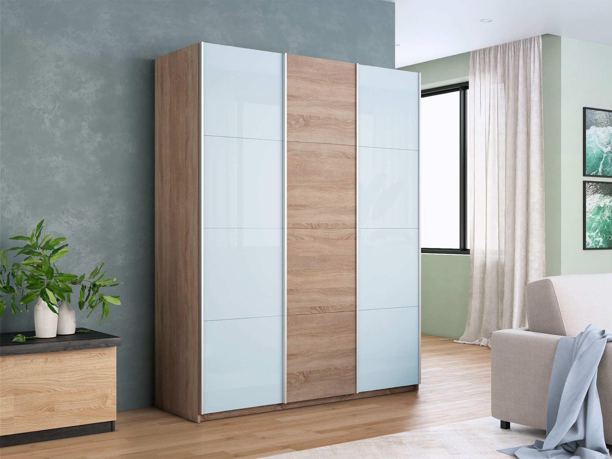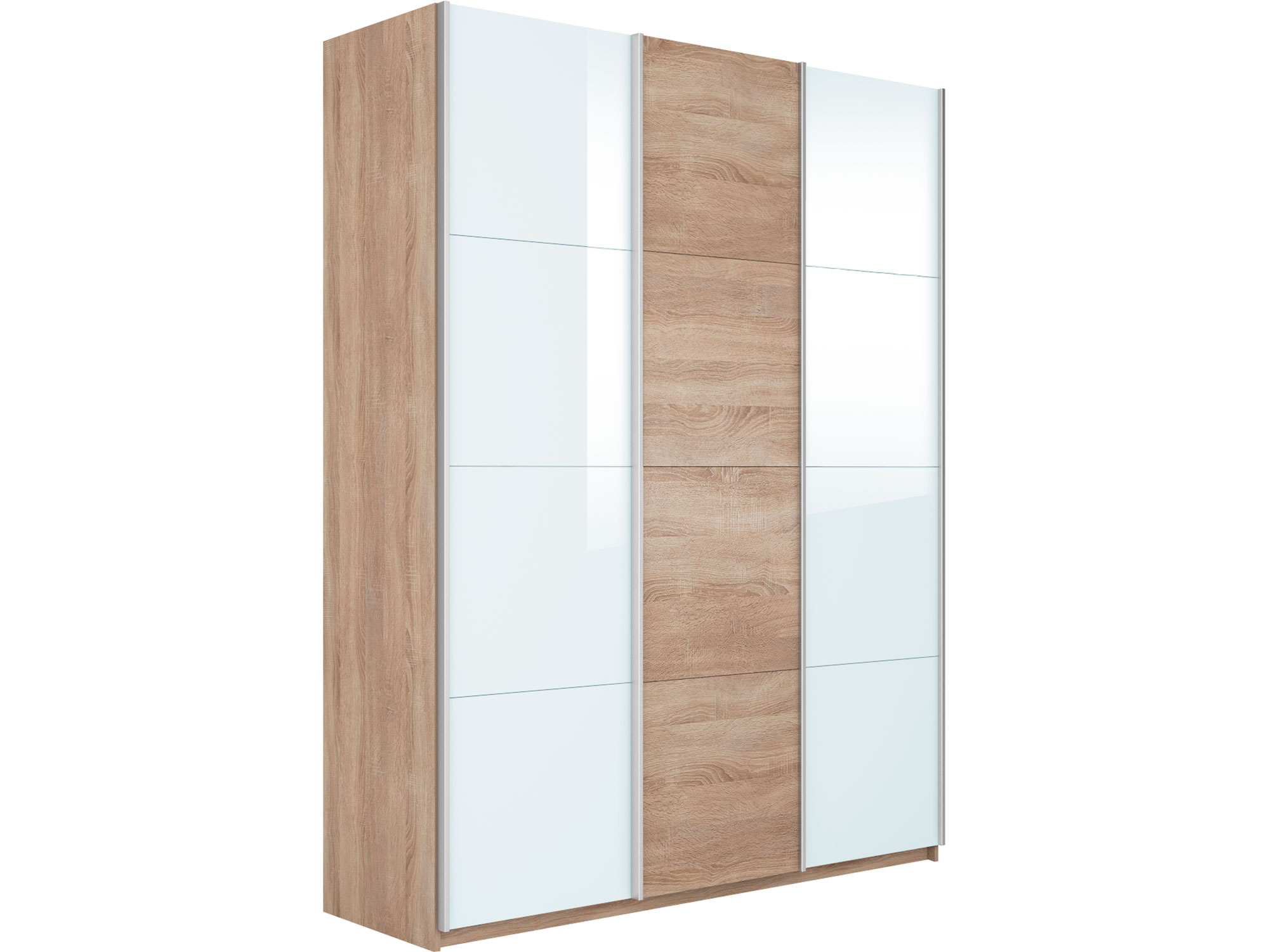 - Шкаф-купе Прайм 3-х дверный 2100 два Стекла Белые/ДСП Сонома