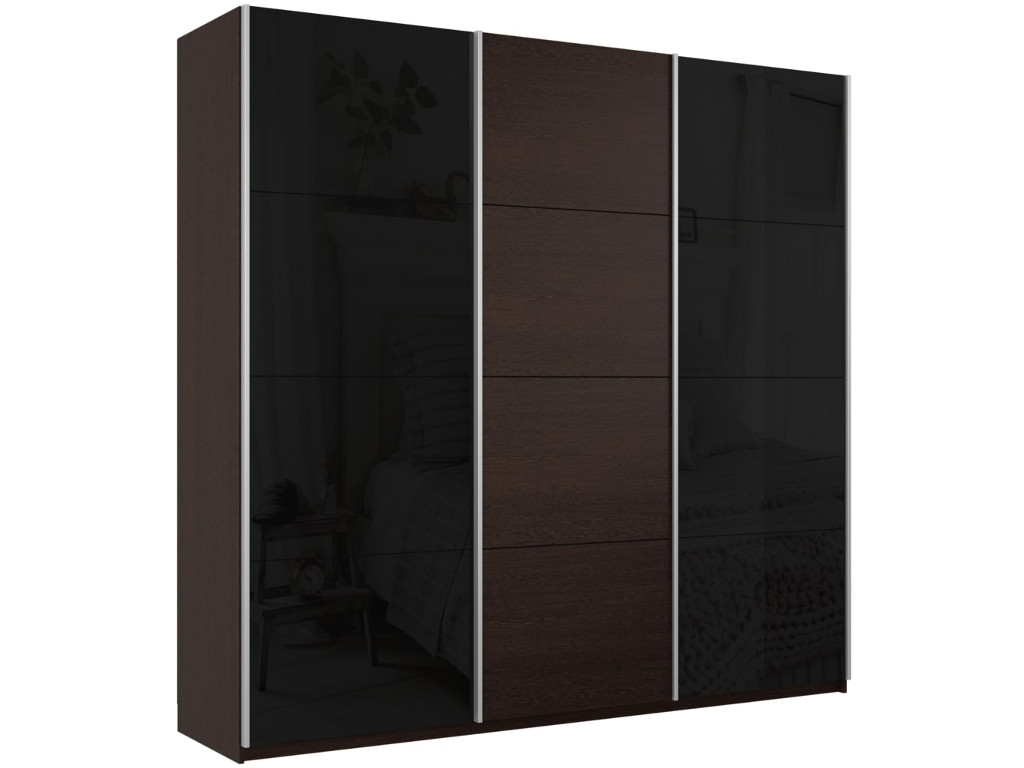 - Шкаф-купе Прайм 3-х дверный 2100 два Стекла Черные/ДСП Венге