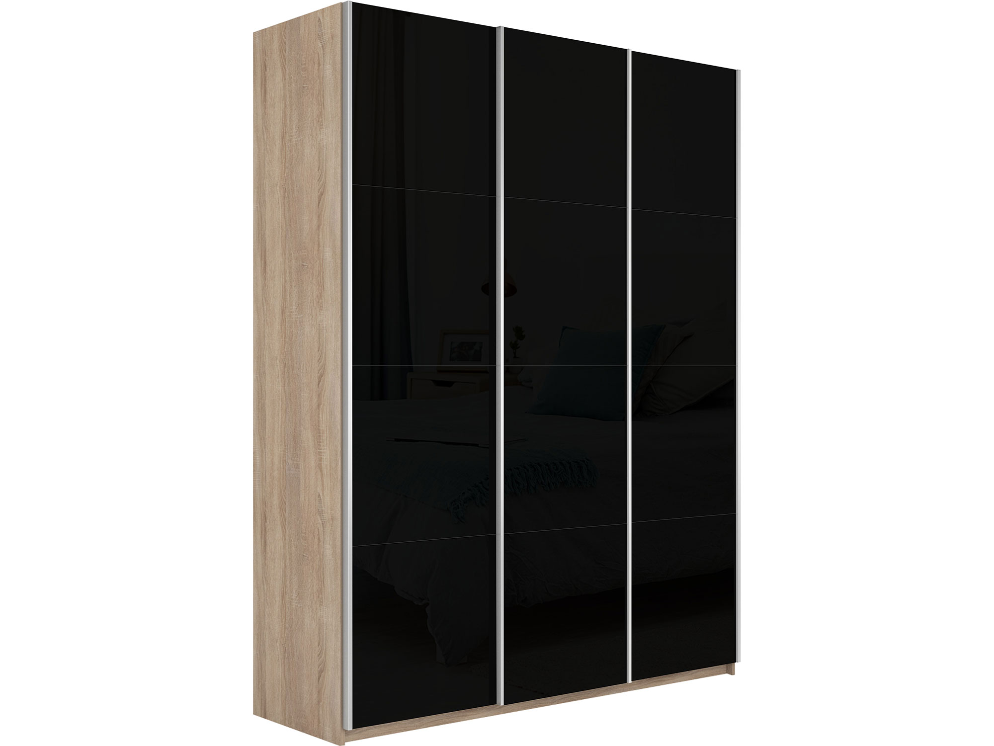 - Шкаф-купе Прайм 3-х дверный 2100 три стекла черные Сонома