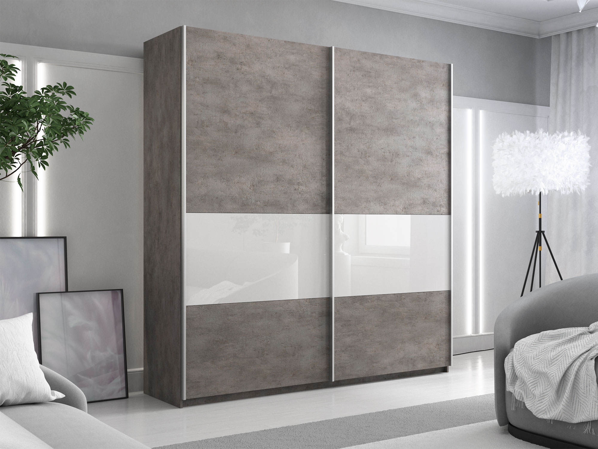 Шкаф-купе Прайм Широкий 2-х дверный ДСП/вставки Стекло Белое Бетон
