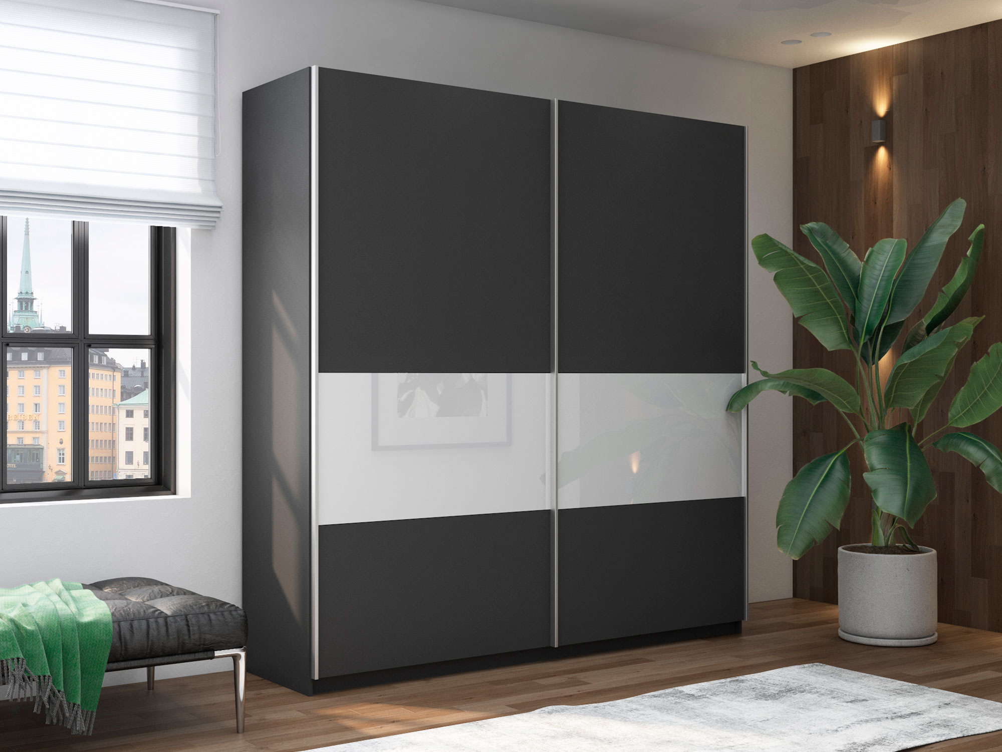 Шкаф-купе Прайм Широкий 2-х дверный ДСП/вставки Стекло Белое Серый Диамант