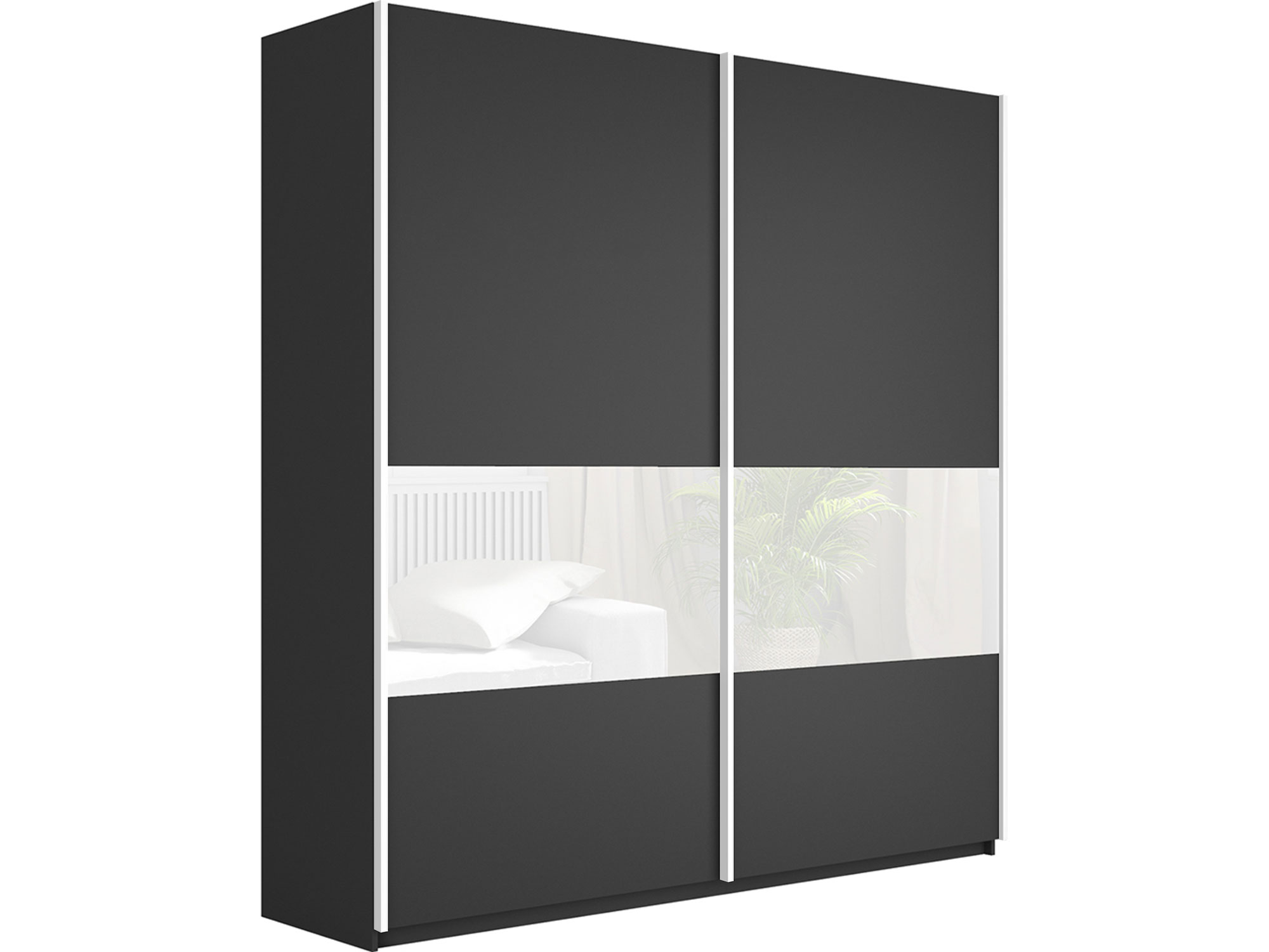 - Шкаф-купе Прайм Широкий 2-х дверный ДСП/вставки Стекло Белое Серый Диамант
