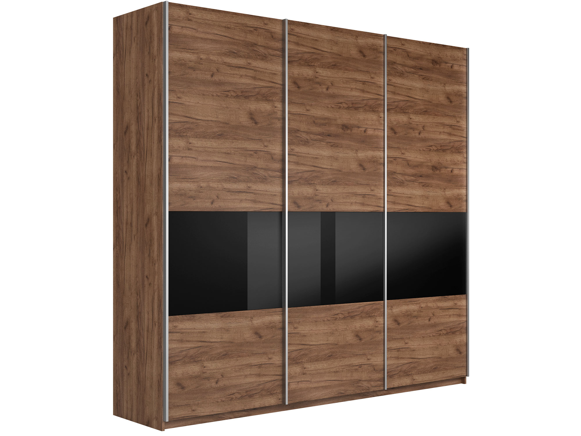 - Шкаф-купе Прайм Широкий 3-х дверный ДСП/вставки Стекло Черное Крафт табачный