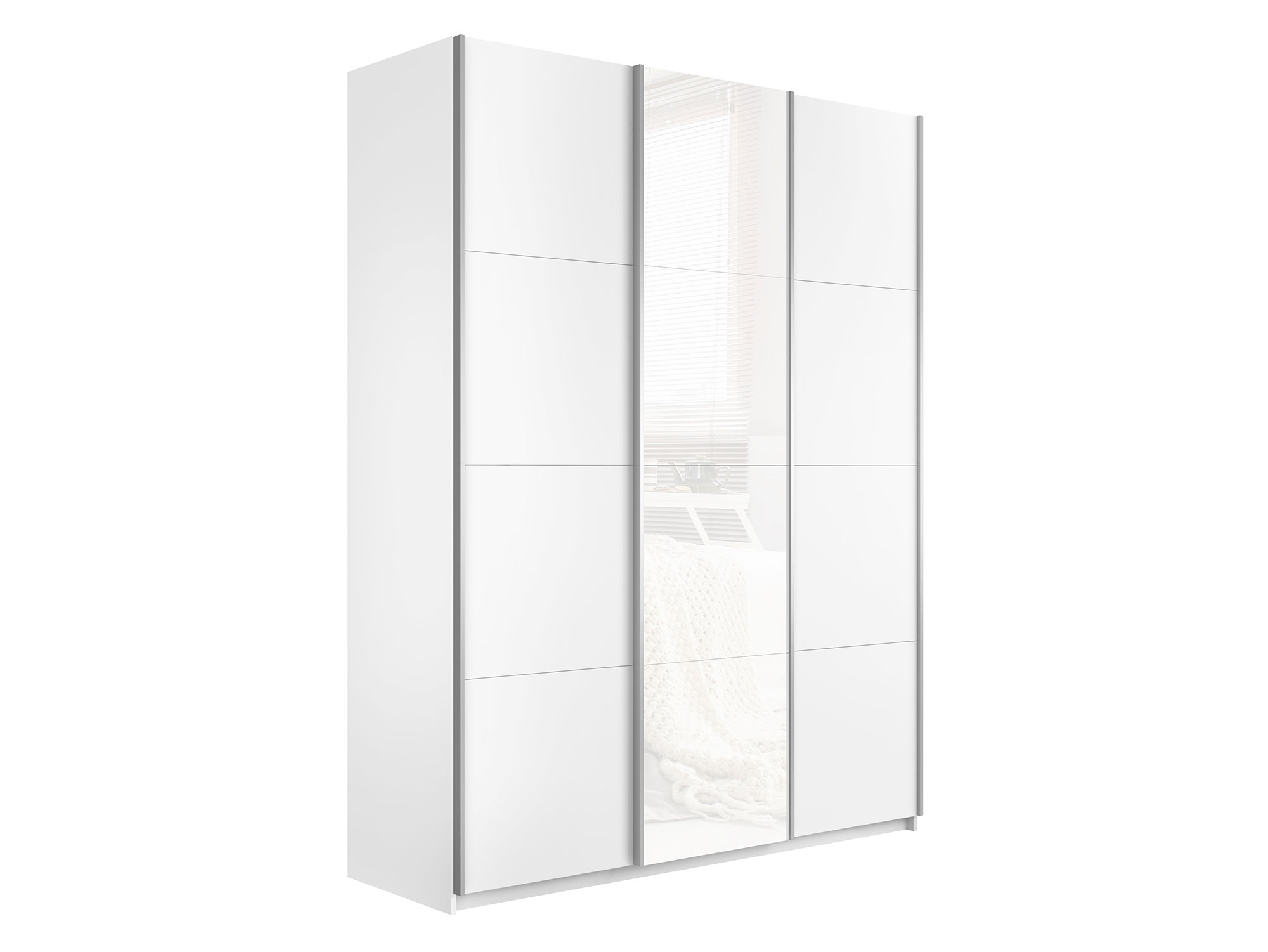 - Шкаф-купе Прайм Широкий 3-х дверный два ДСП/Стекло Белое Белый Снег