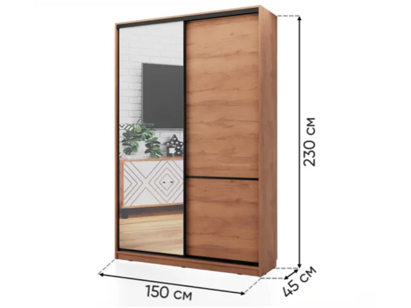 - Шкаф-купе СТМ Line 150х45 с зеркалом Дуб табачный