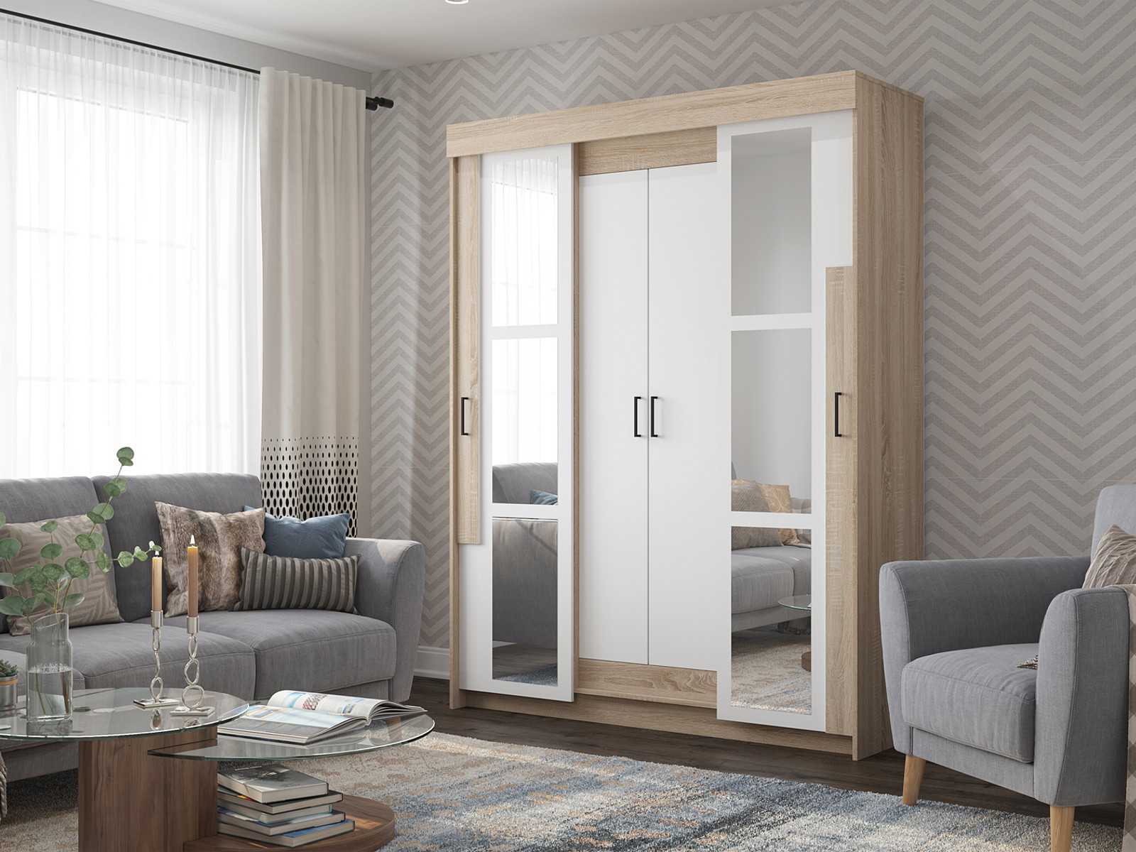 Шкаф-купе Victor с зеркалами Сонома-Белый