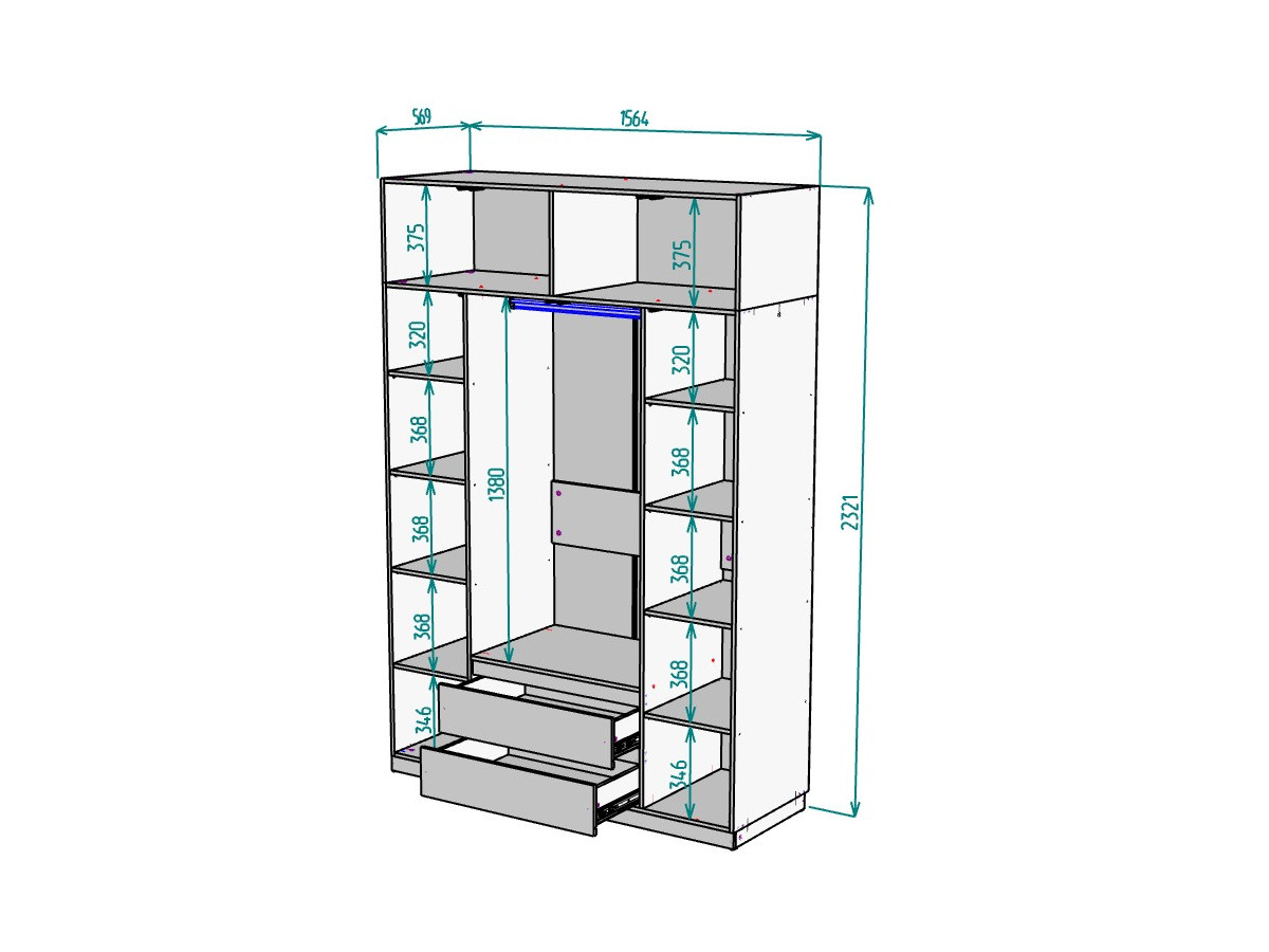 - Ширина 1564 мм