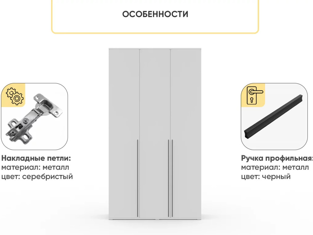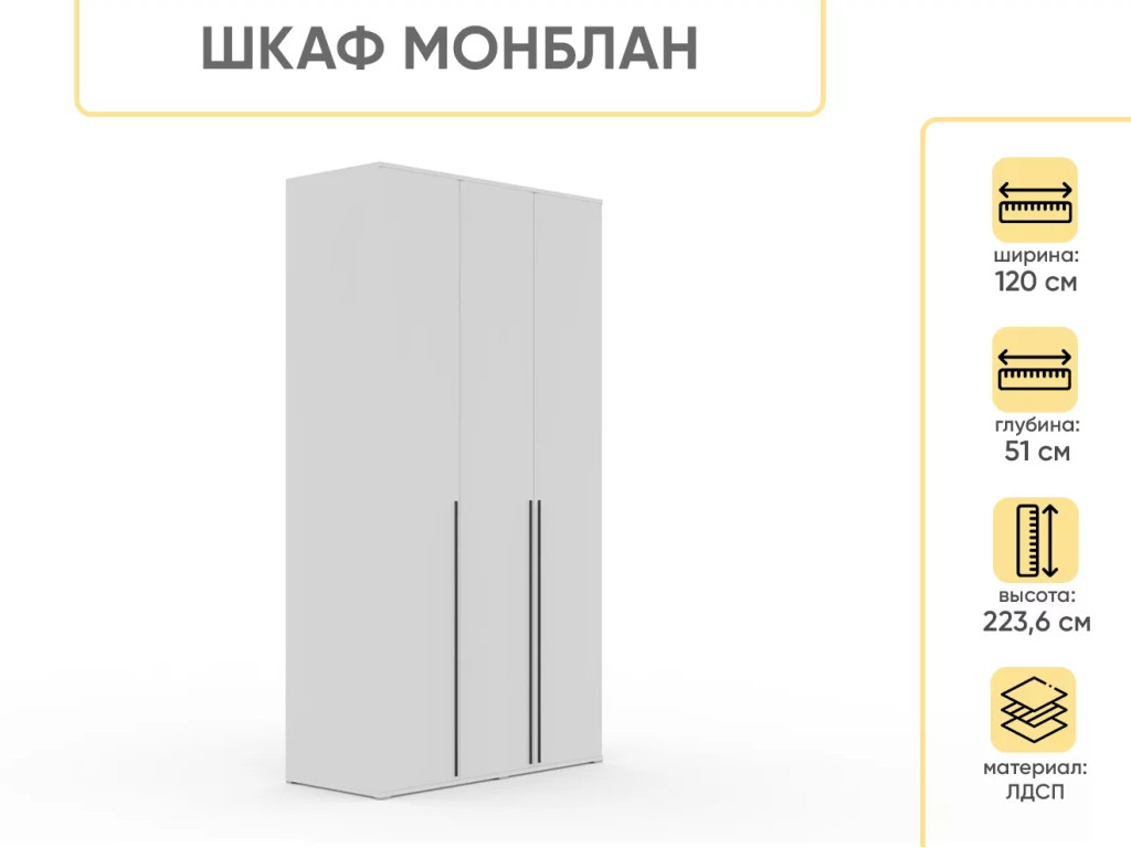 Шкаф Монблан распашной 1200 3-х дверный (ножки) Белый