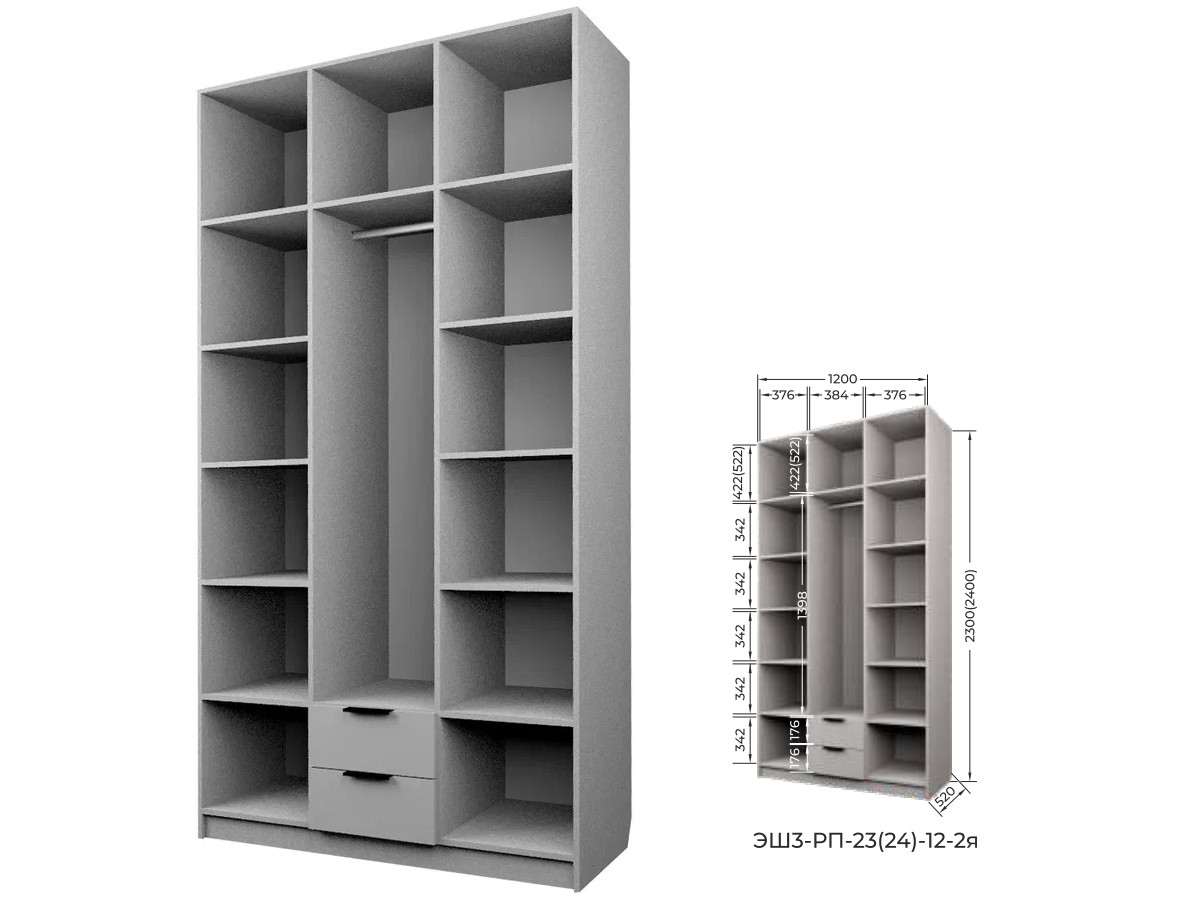 Комплект: ЭШ3-РП-24-12-2я, Шкаф с 2 ящиками + ЗС-24-2я,Зеркало для шкафов ЭШ 2400 мм + два ЗС-24,Зеркало для шкафов ЭШ 2400 мм