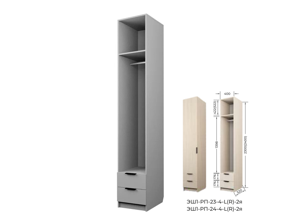 - Шкаф с 2 ящиками со штангой Экон ЭШ1-РП-24-4-R-2я с зеркалом