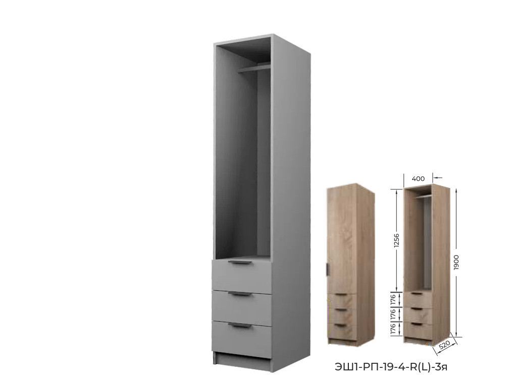 Шкаф с 3 ящиками со штангой Экон ЭШ1-РП-19-4-R-3я с зеркалом