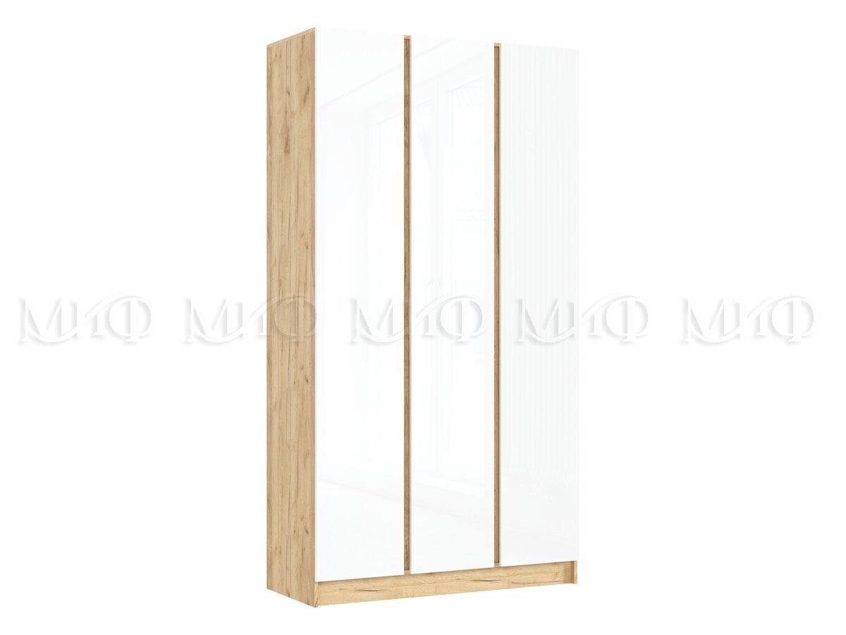 Шкаф трехстворчатый Келвин (1200) Белый Глянец, Дуб Крафт-вставка дуб крафт