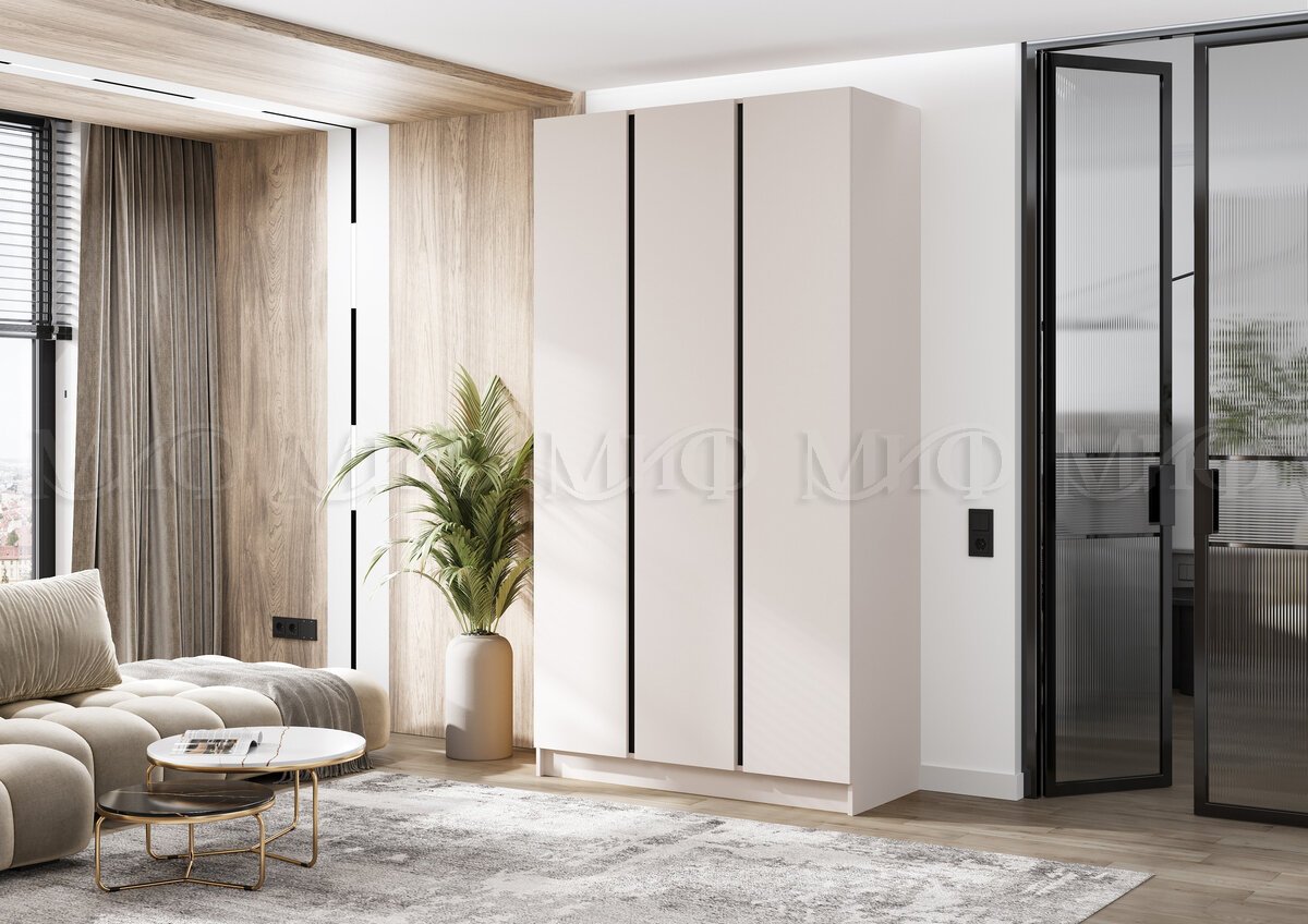 - Шкаф трехстворчатый Келвин (1200) Кашемир-вставка черная