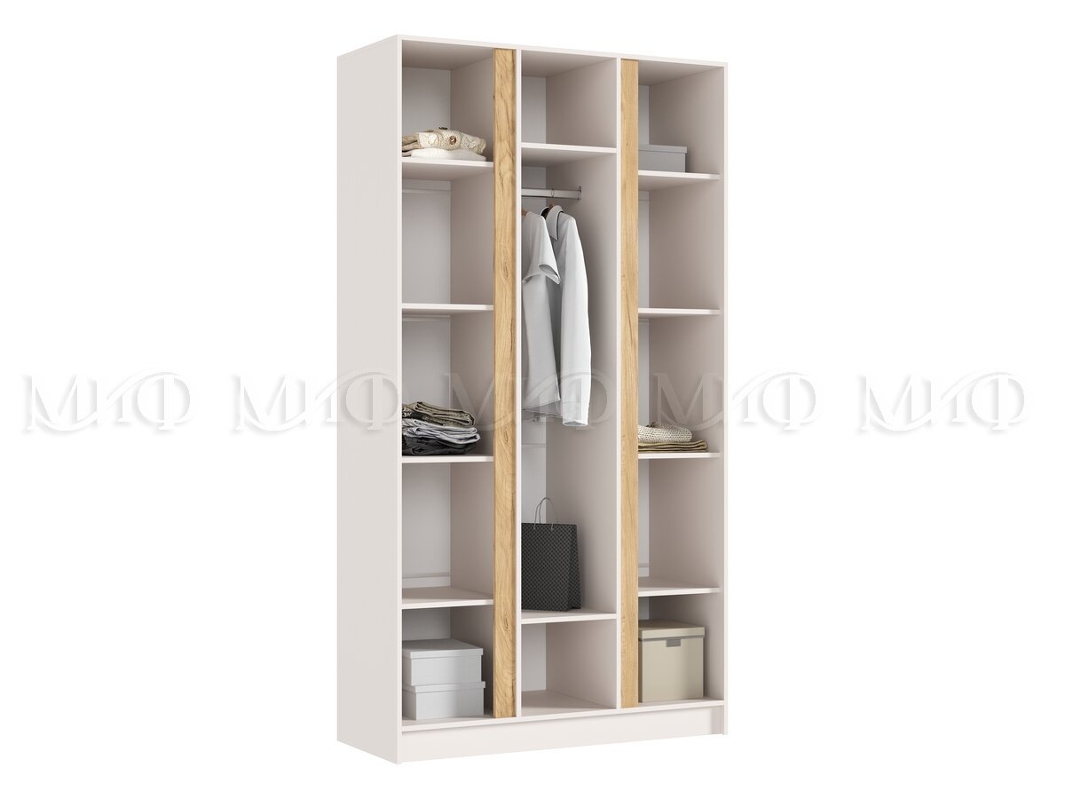 - Шкаф трехстворчатый Келвин (1200) Кашемир-вставка дуб крафт