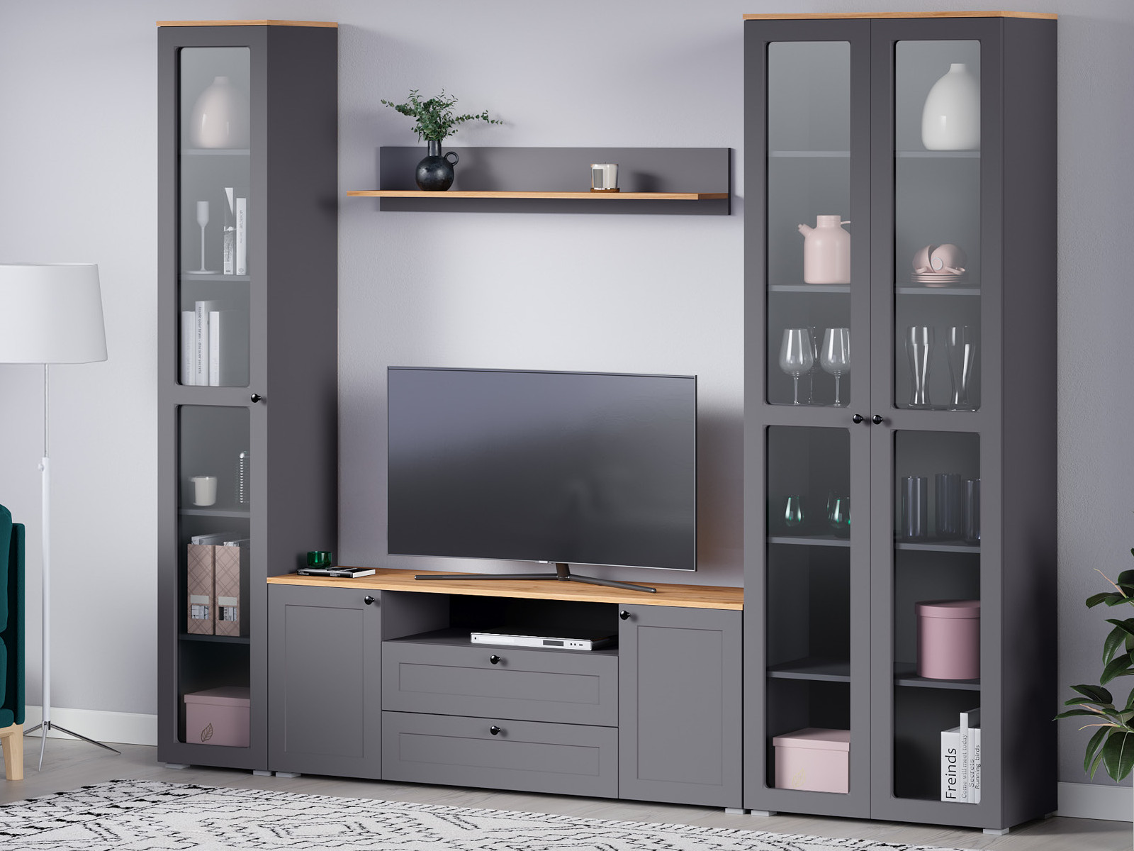 - Шкаф-витрина 16.394.03 Остин Серый Графит