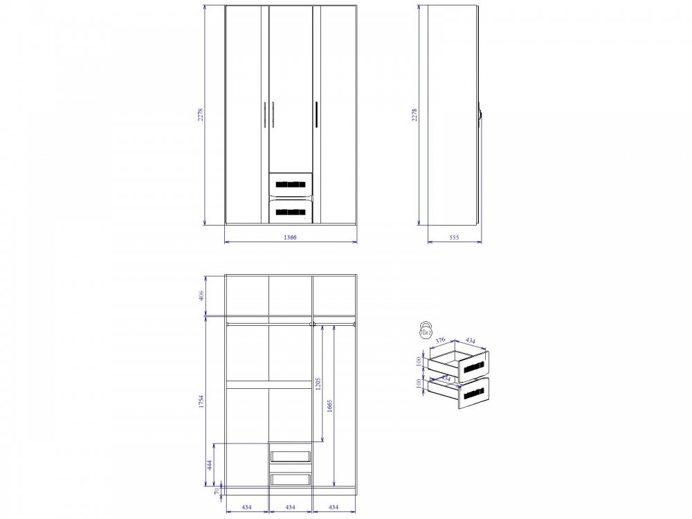 Шкаф 3-х дверный Мале