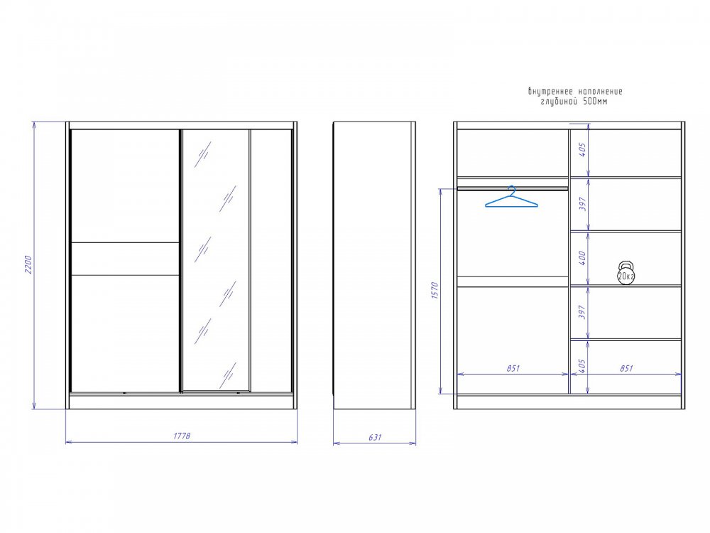 Размер ШхГхВ: 1778*631*2200 мм