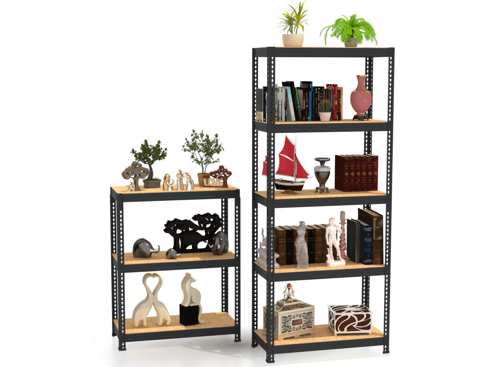 Возможен комбинированный вариант сборки комплекта из 2-х стеллажей высотой 0.9 м с двумя и тремя полками. Максимальная равномерно распределенная нагрузка в этом варианте сборки на каждый ярус не должна превышать 170 кг.